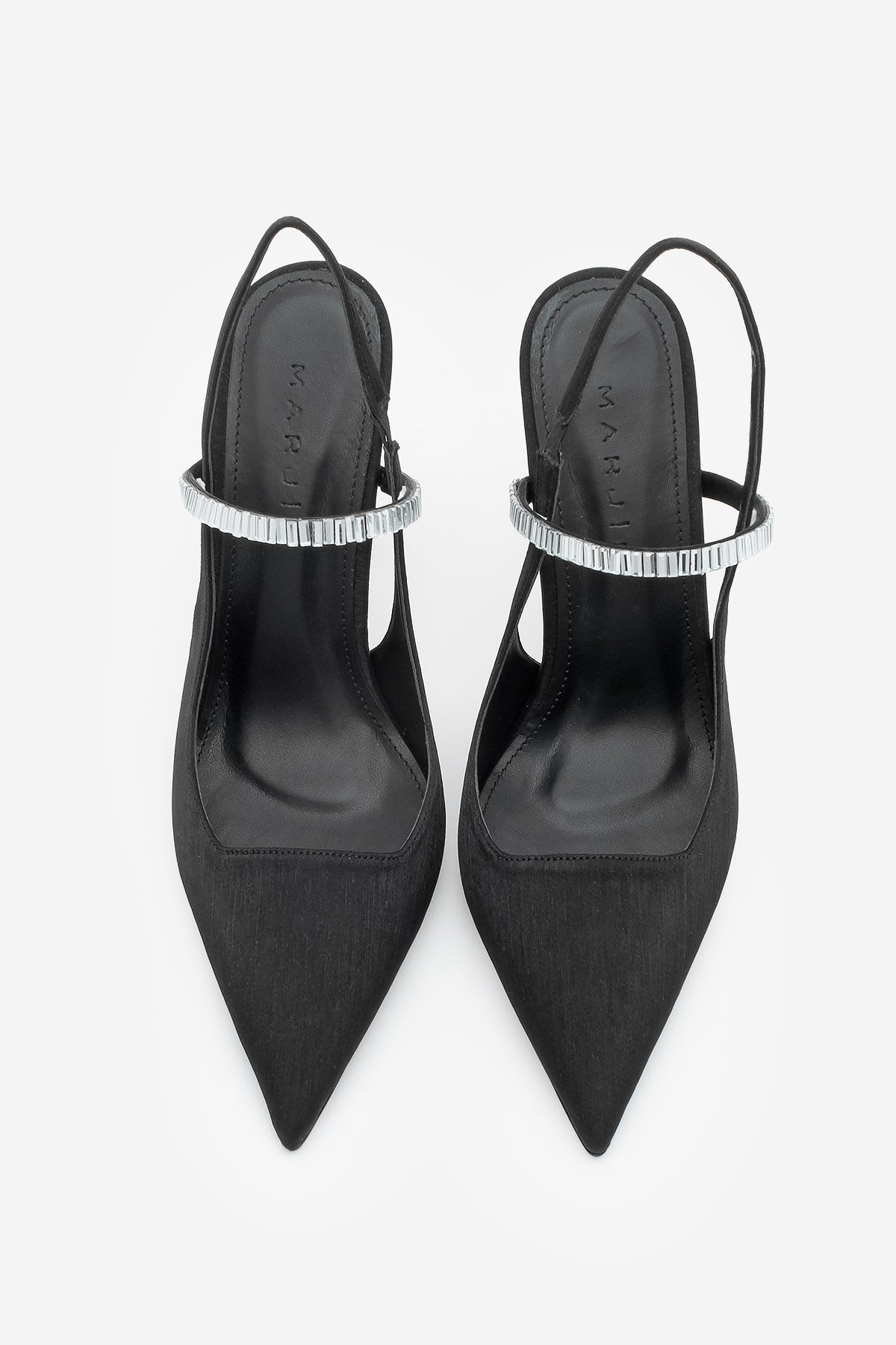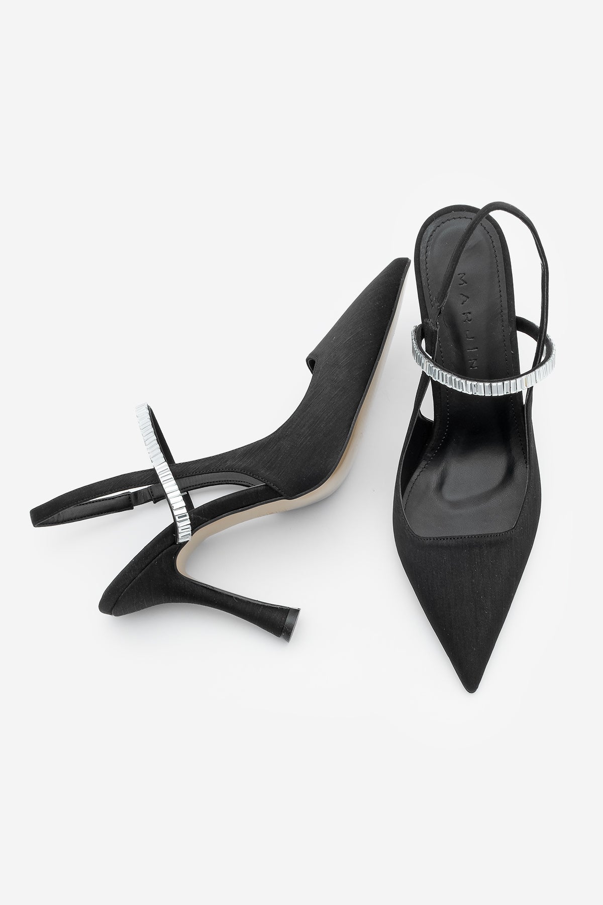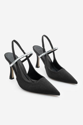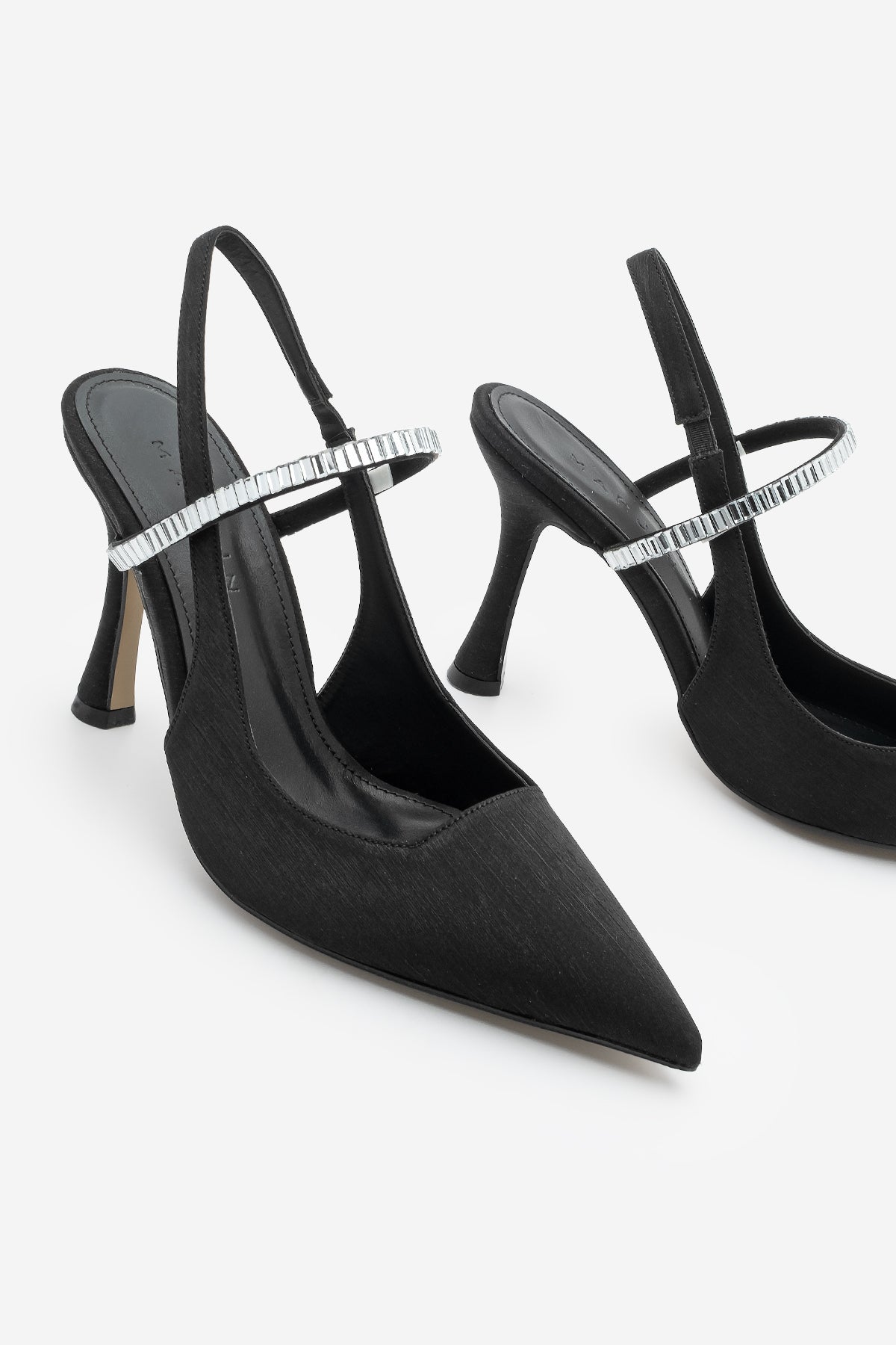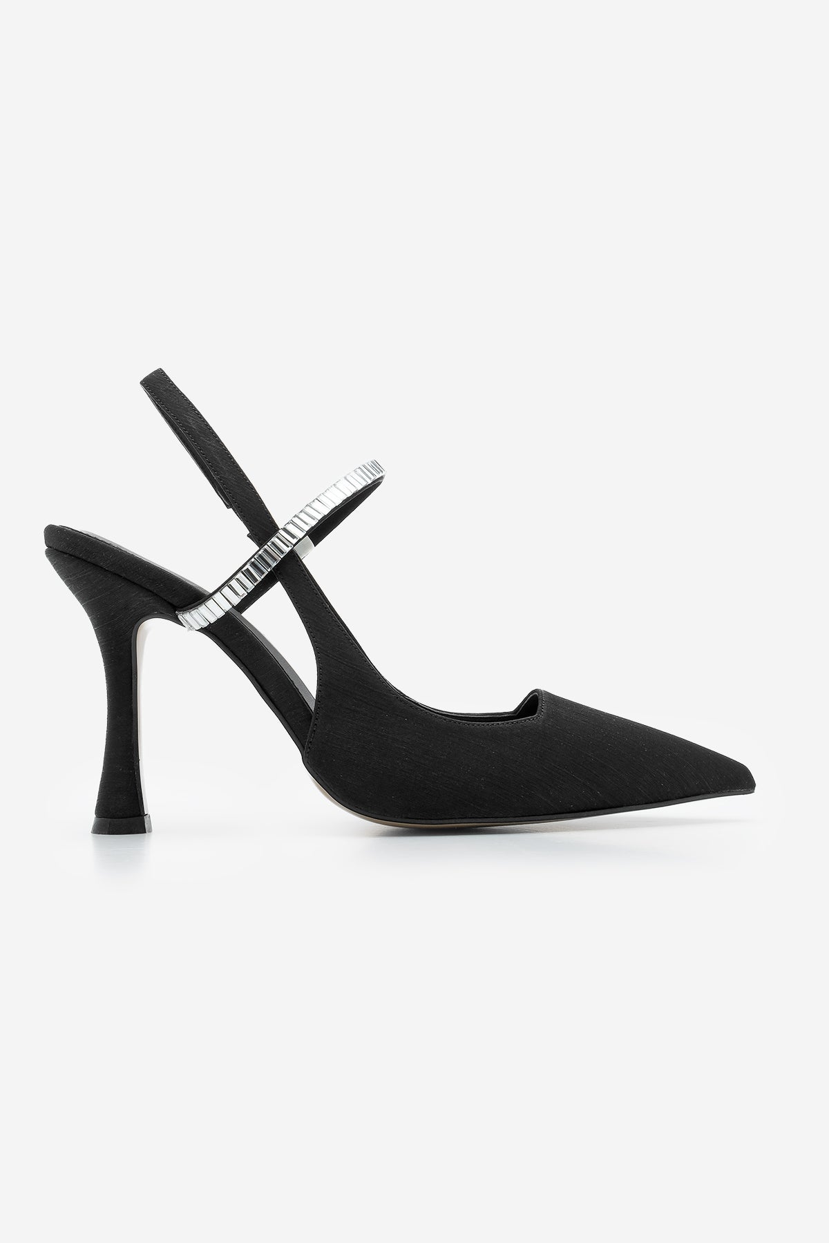 Kadın Stiletto Taşlı Topuklu Ayakkabı Lovan - Siyah Saten