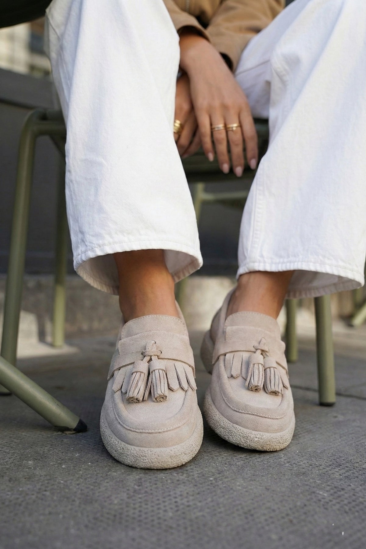 Kadın Hakiki Deri Loafer Günlük Ayakkabı Suma - Bej Süet