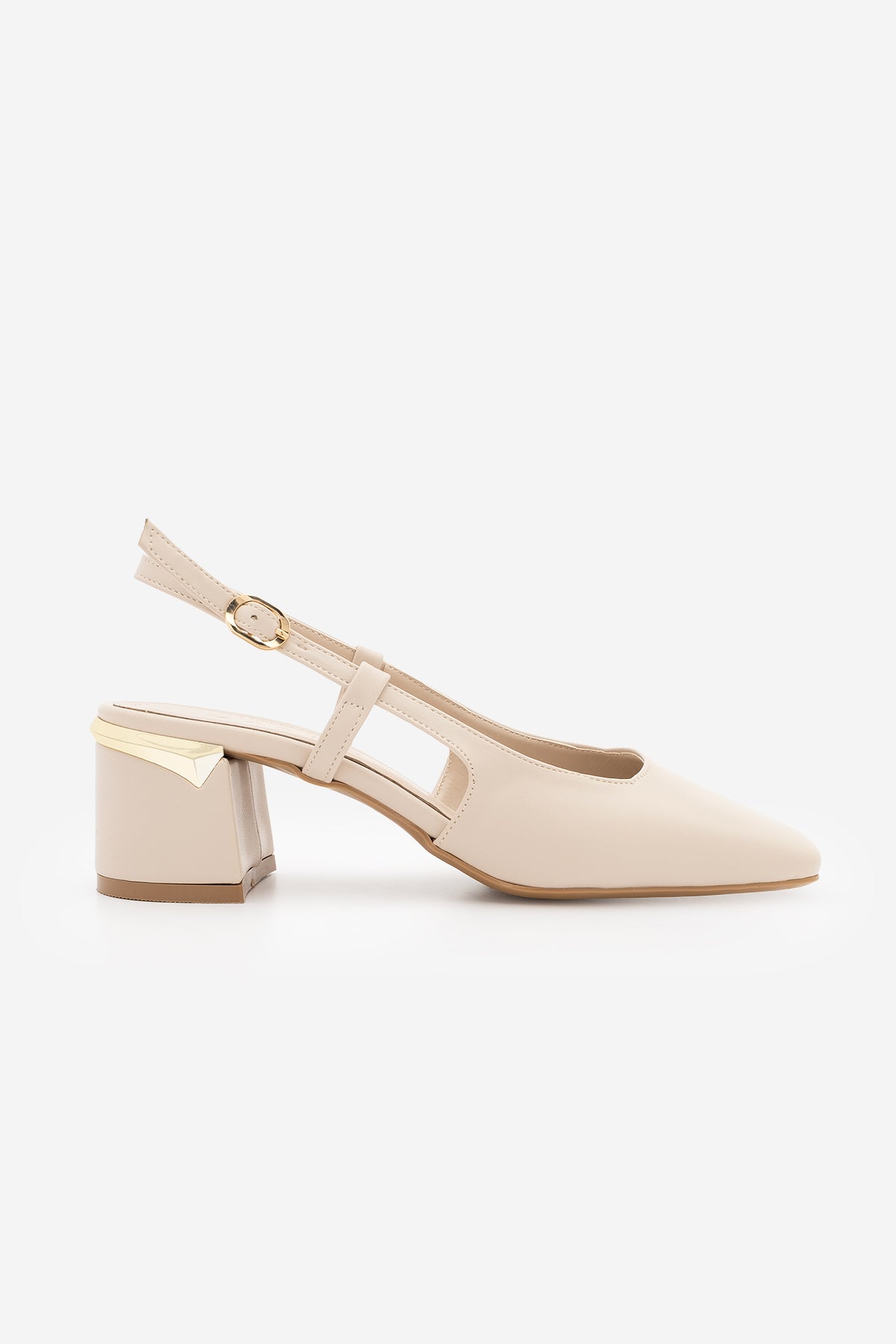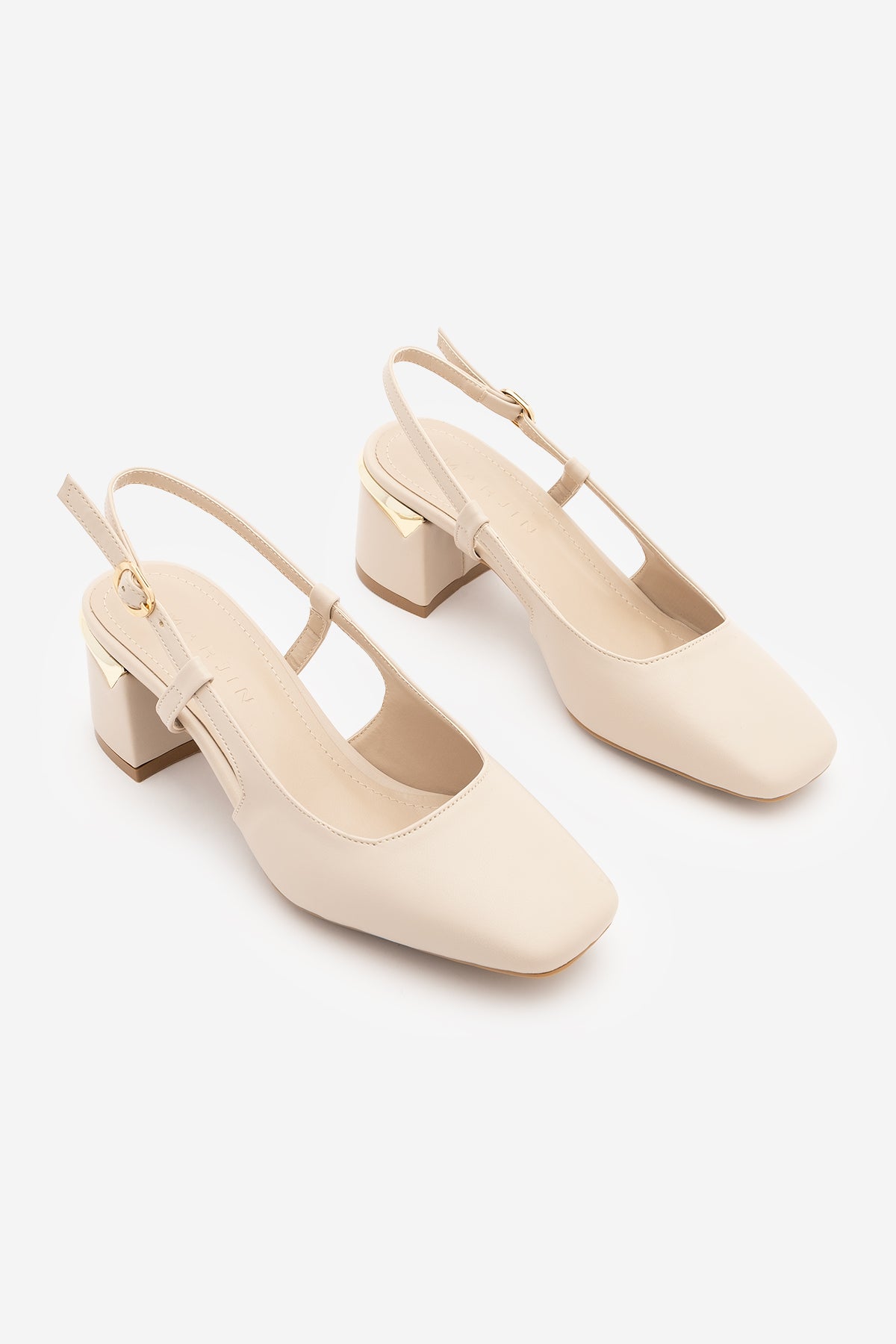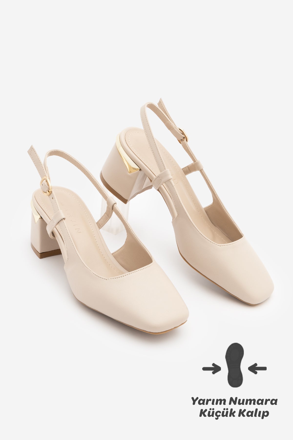 Kadın Kalın Topuk Klasik Topuklu Ayakkabı Likay - Ekru