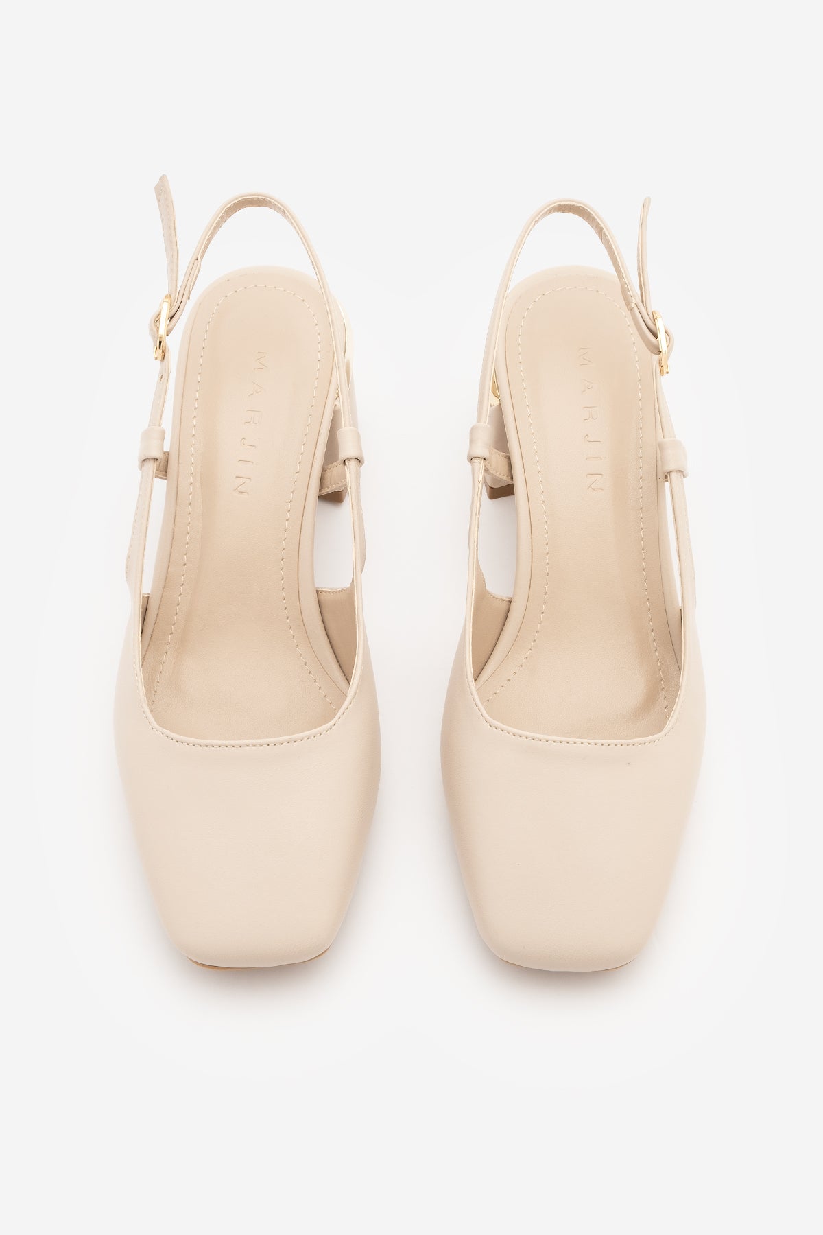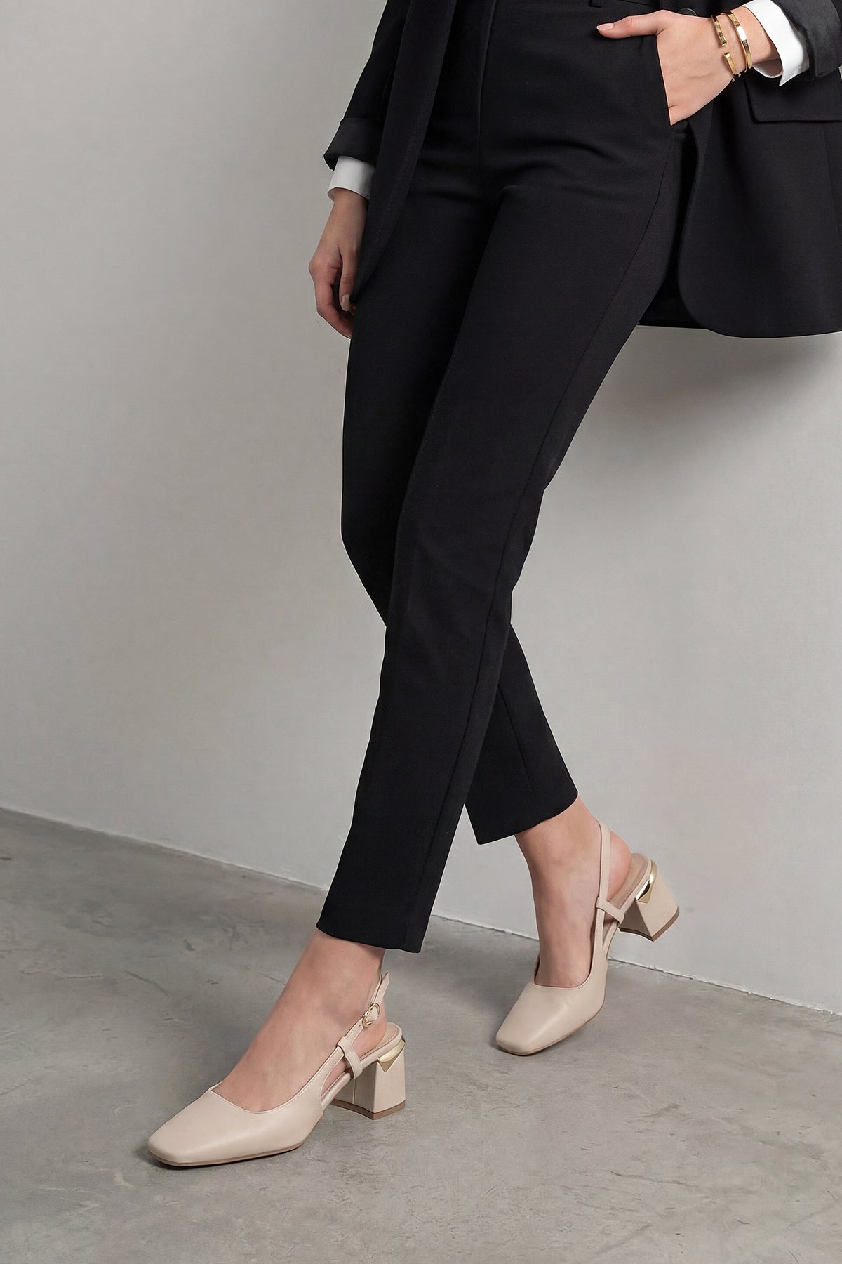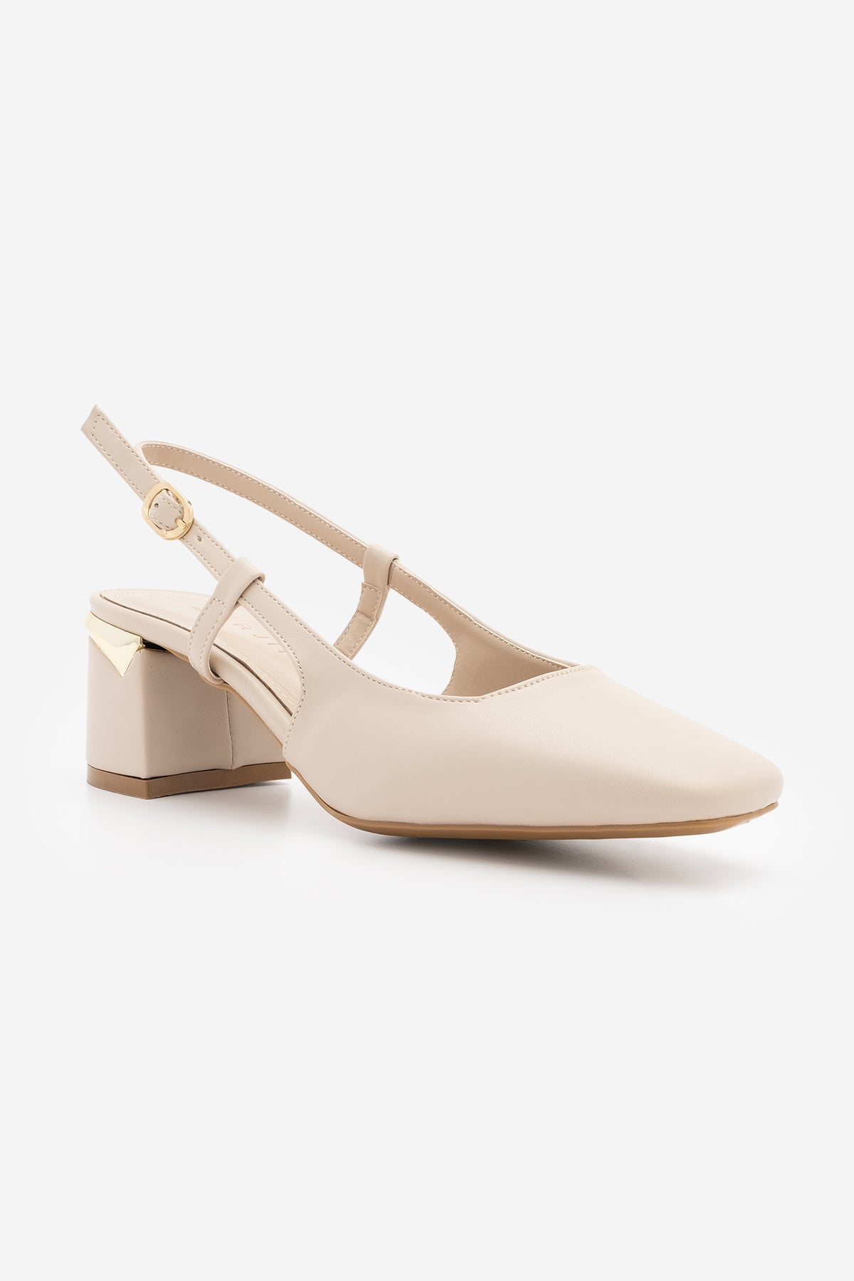 Kadın Kalın Topuk Klasik Topuklu Ayakkabı Likay - Ekru