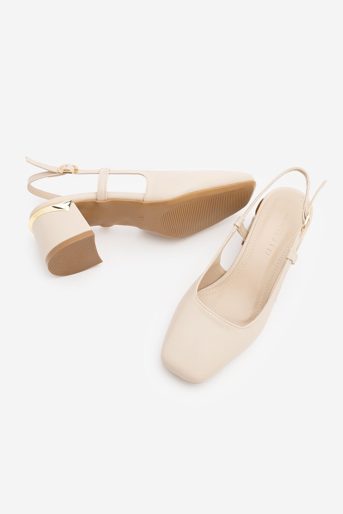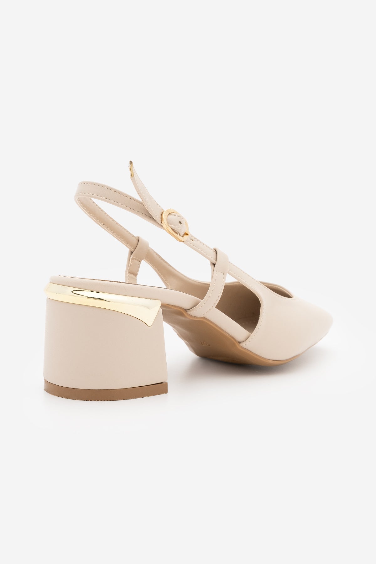 Kadın Altın Metal Ökçeli Topuklu Sandalet Lumera - Bej Saten