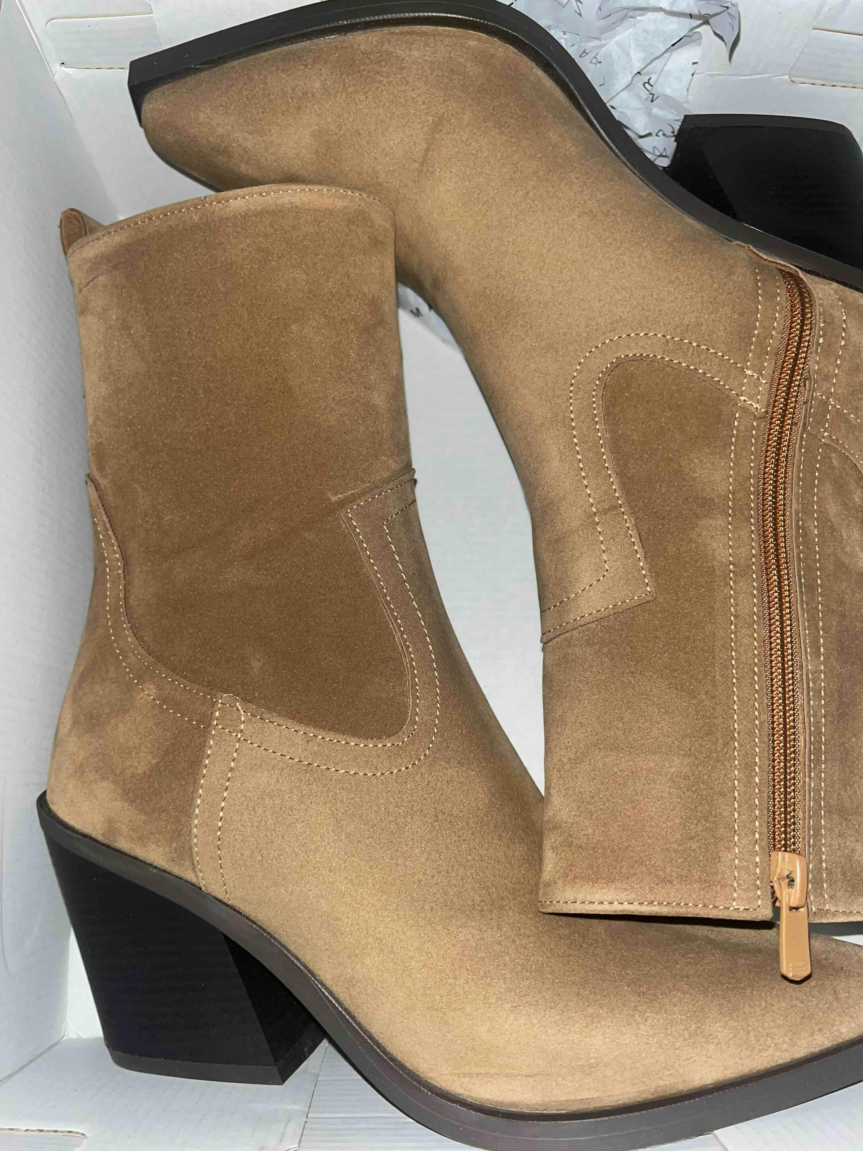 Marjin Kadın Western Bot Fetya: Kalın topuklu tasarımı ve vizon, taba, bej süet renk seçenekleriyle tarzınıza modern bir dokunuş katıyor. Rahat tabanı sayesinde gün boyu konfor sağlarken, şık ve trend görünümüyle her kombine uyum sağlar. Western esintili bu bot, stil sahibi kadınlar için mükemmel bir tercih olacaktır.