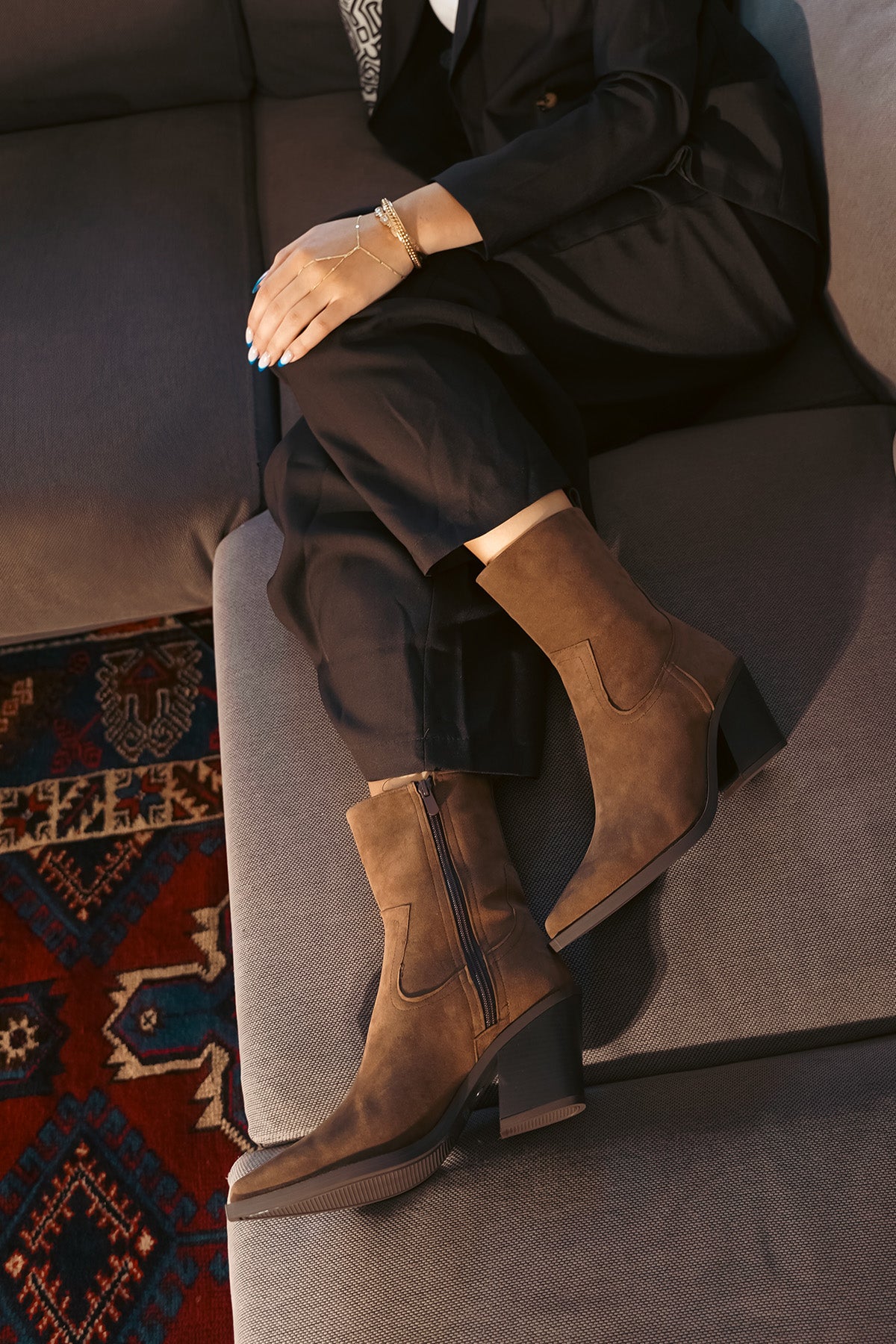 Kadın Topuklu Bot Nayis - Kahve Süet