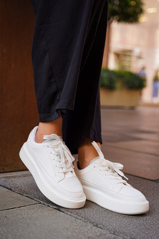 Kadın Sneaker Yüksek Taban Bağcıklı Spor Ayakkabı Domen - Beyaz