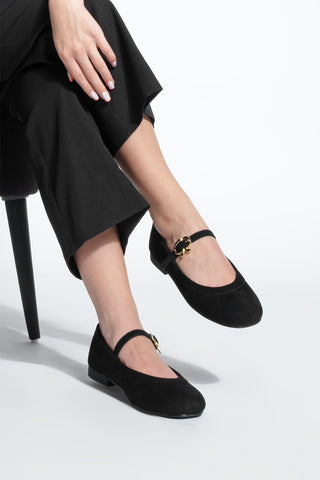 Kadın Tokalı Babet Meladi - Siyah Süet