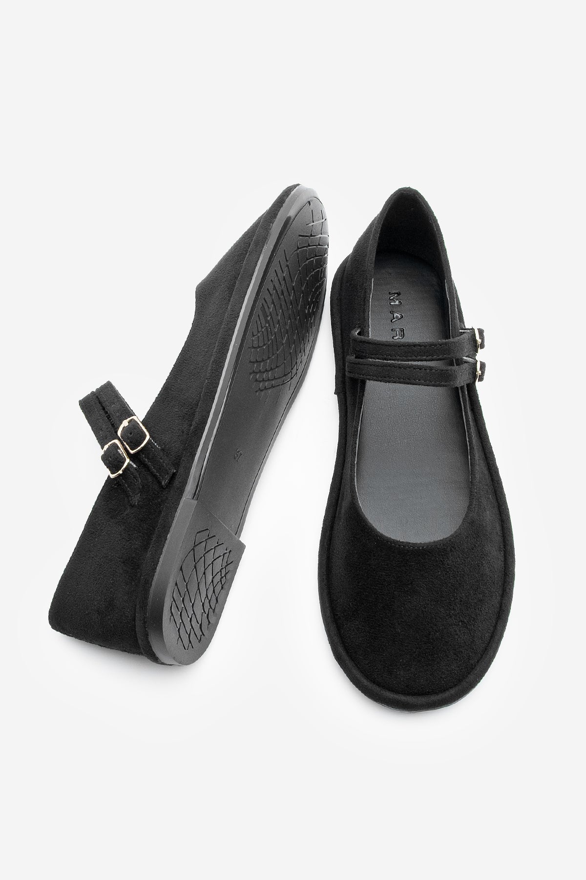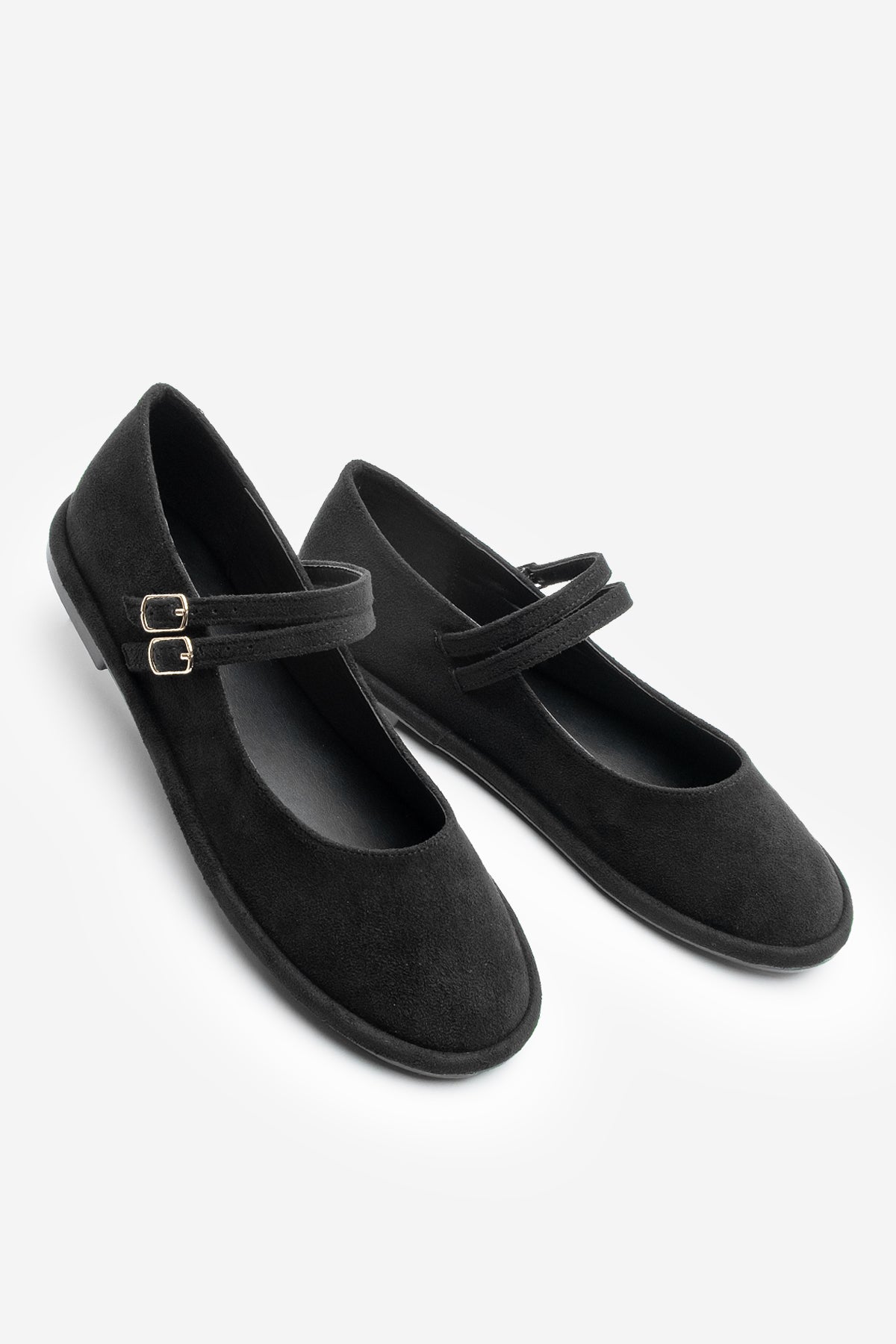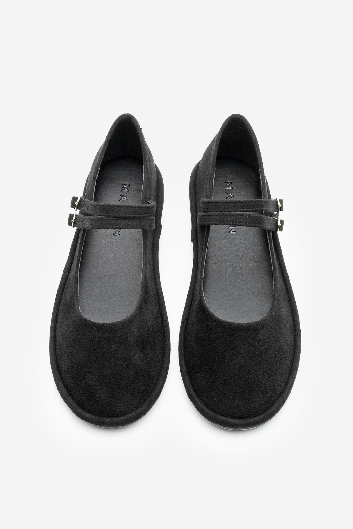 Kadın Çift Bantlı Babet Benus - Siyah Süet