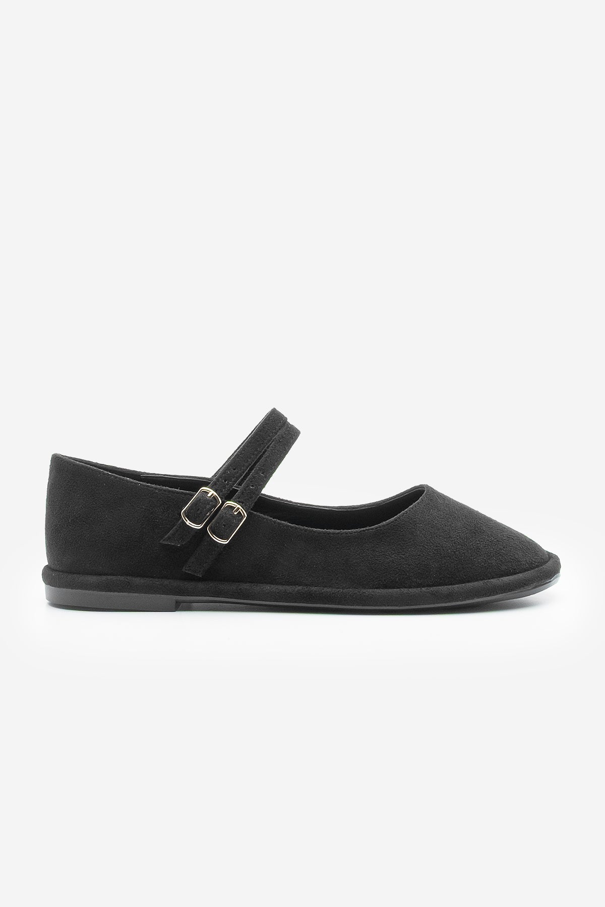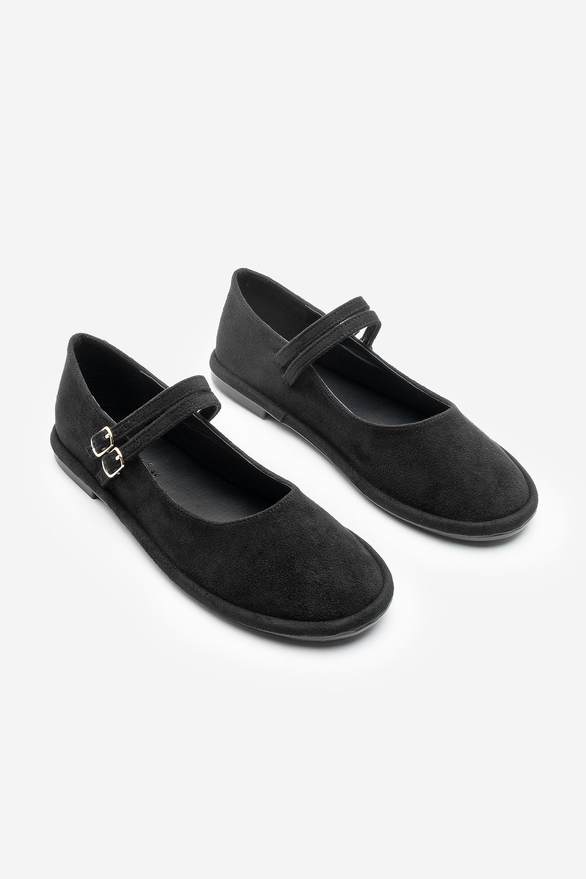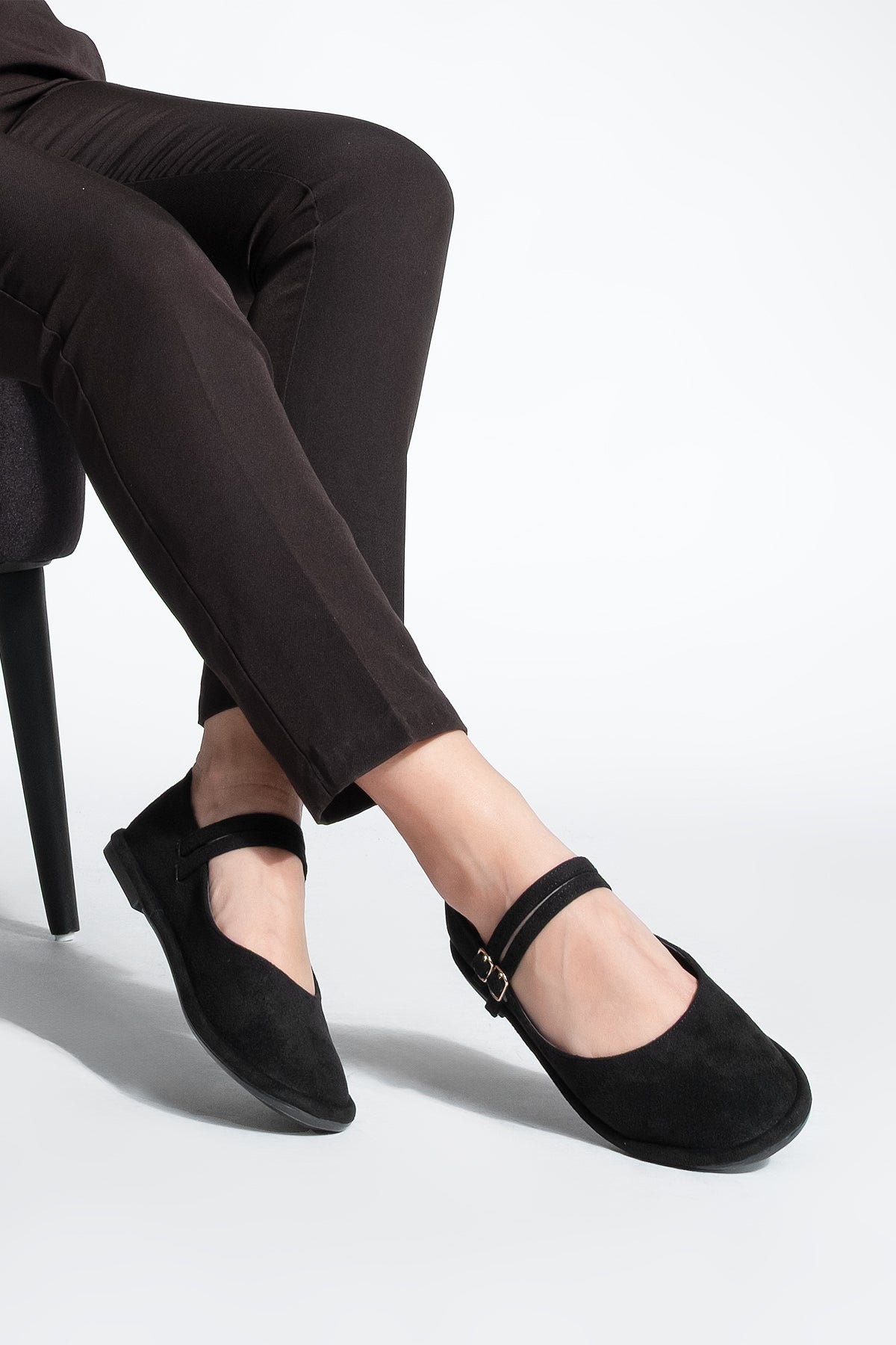 Kadın Çift Bantlı Babet Benus - Siyah Süet