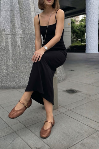 Kadın Mary Jane El Örgüsü Bantlı Günlük Lovesa- Siyah