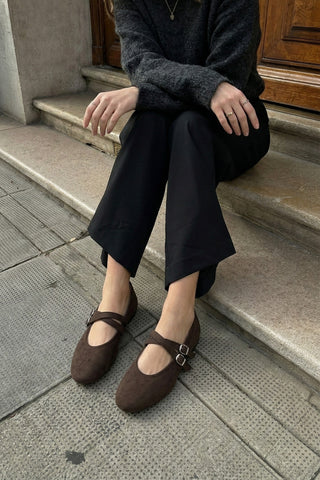 Kadın Çapraz Bantlı Babet Niroza - Kahve Süet
