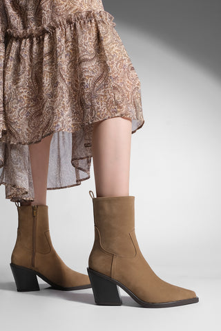 Kadın Sivri Burun Günlük Topuklu Bot Losya - Kahve Süet