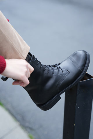 Kadın Hakiki Deri Postal Bot Orben - Siyah