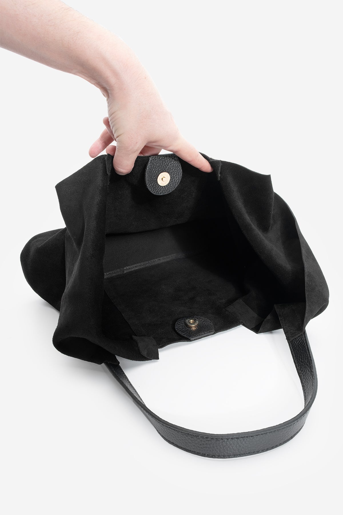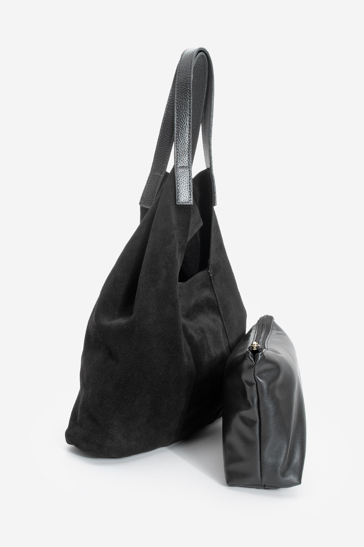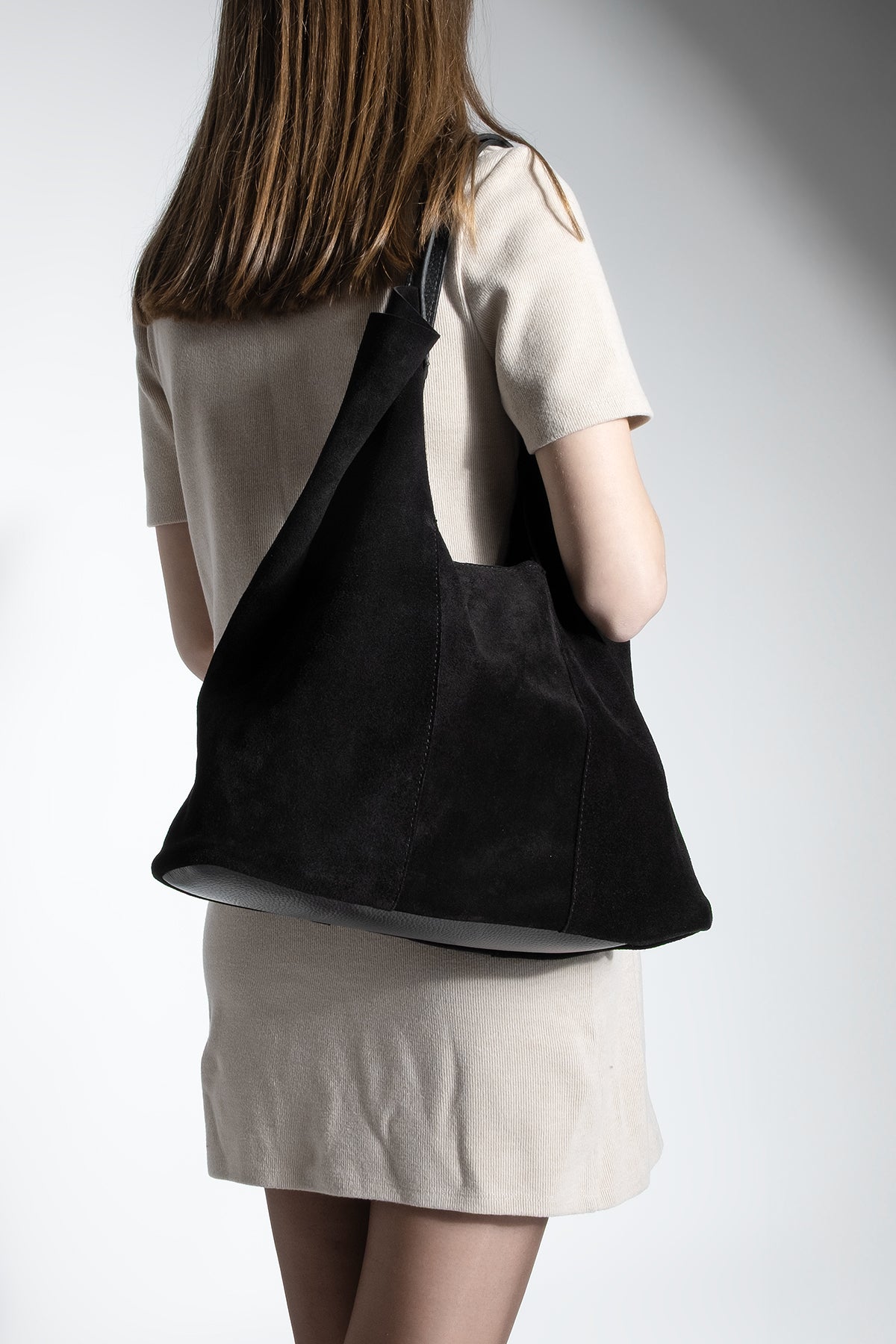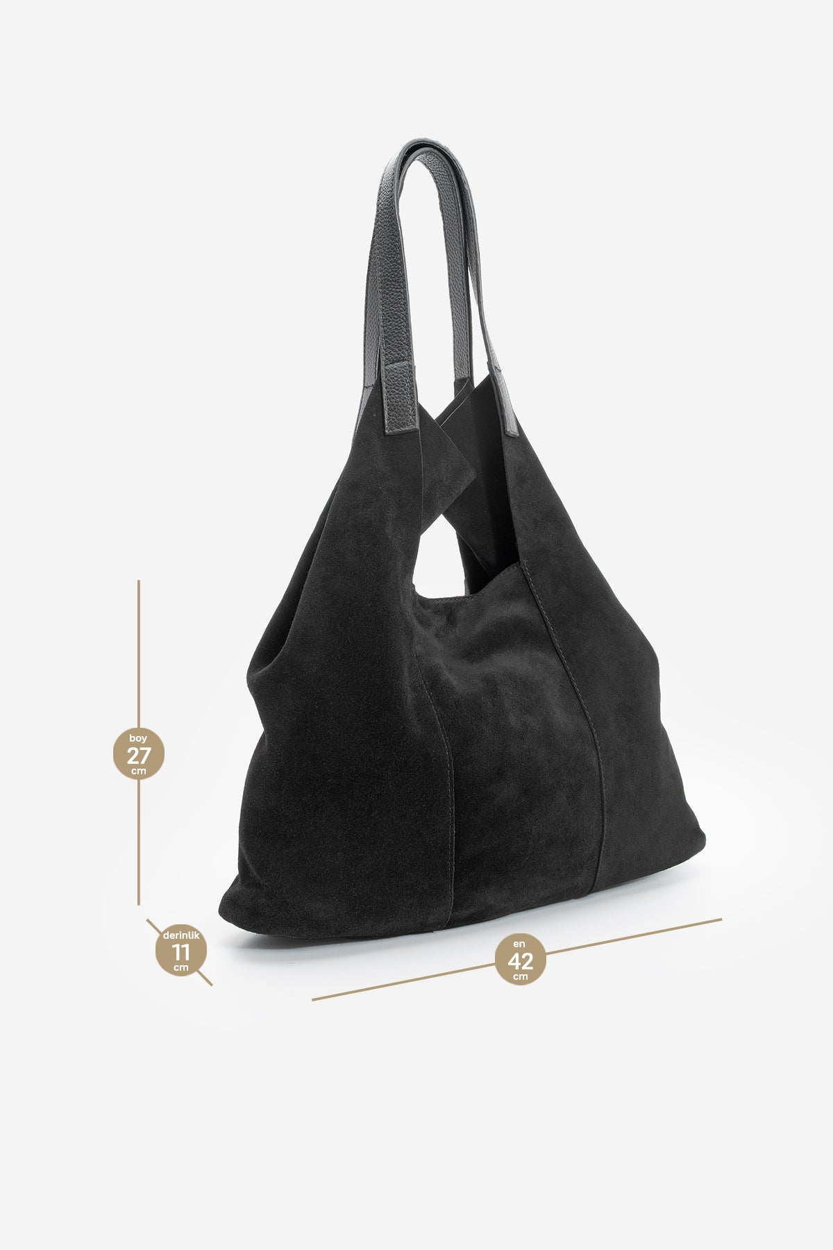 Kadın Hakiki Deri Omuz Çantası Filun - Siyah Süet