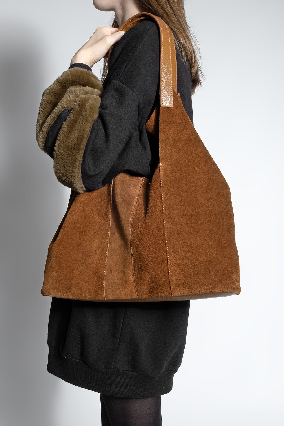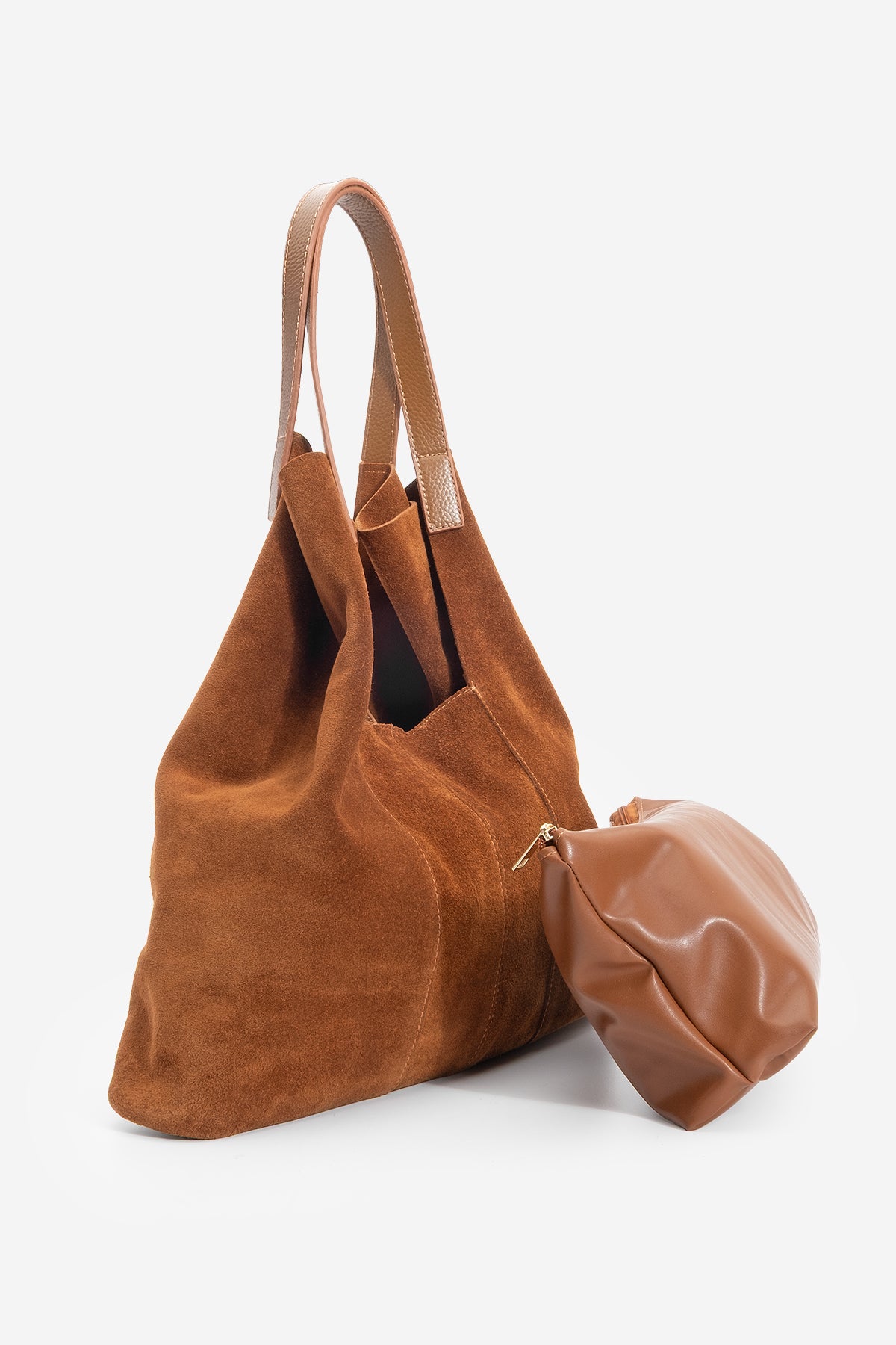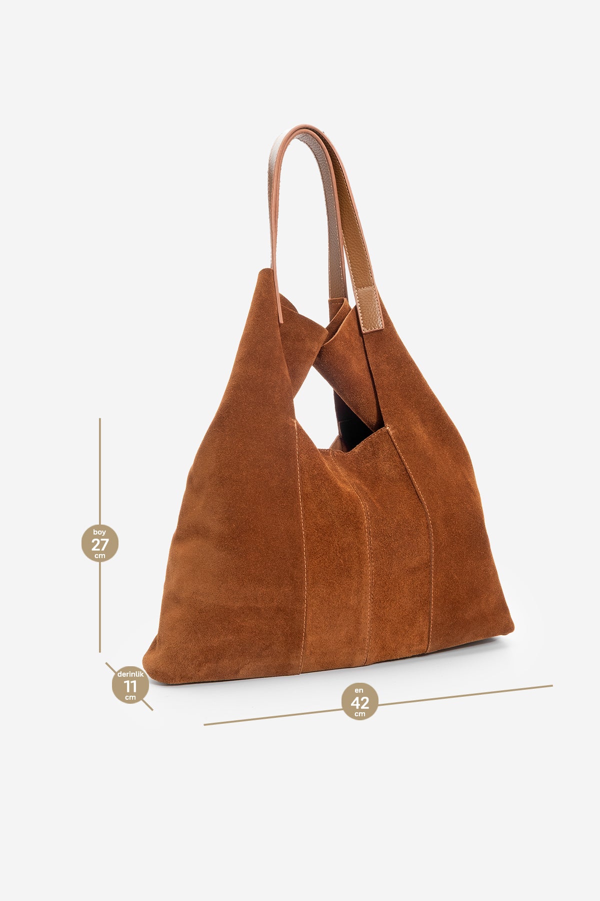 Kadın Hakiki Deri Omuz Çantası Filun - Taba Süet