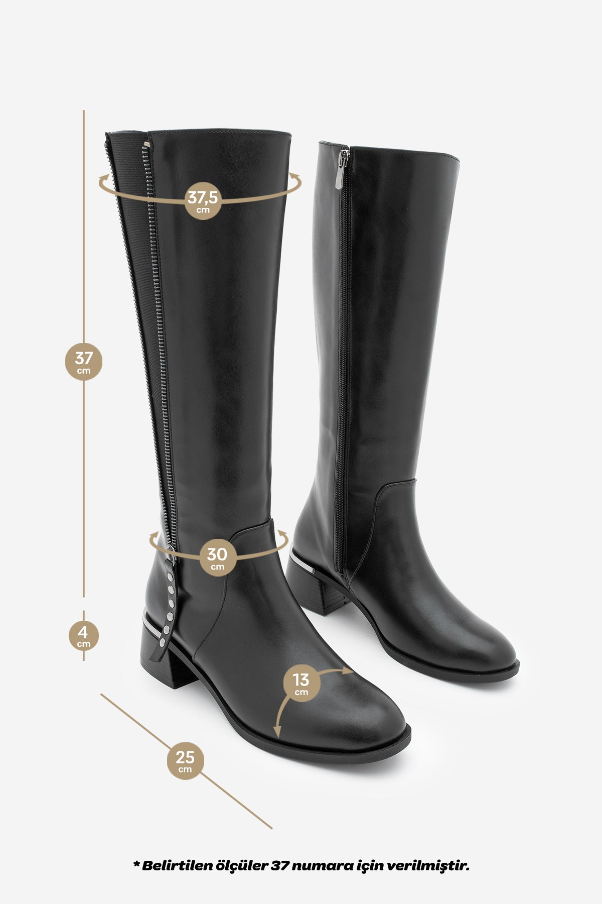 Kadın Fermuar Aksesuarlı Topuklu Çizme Aneka - Siyah