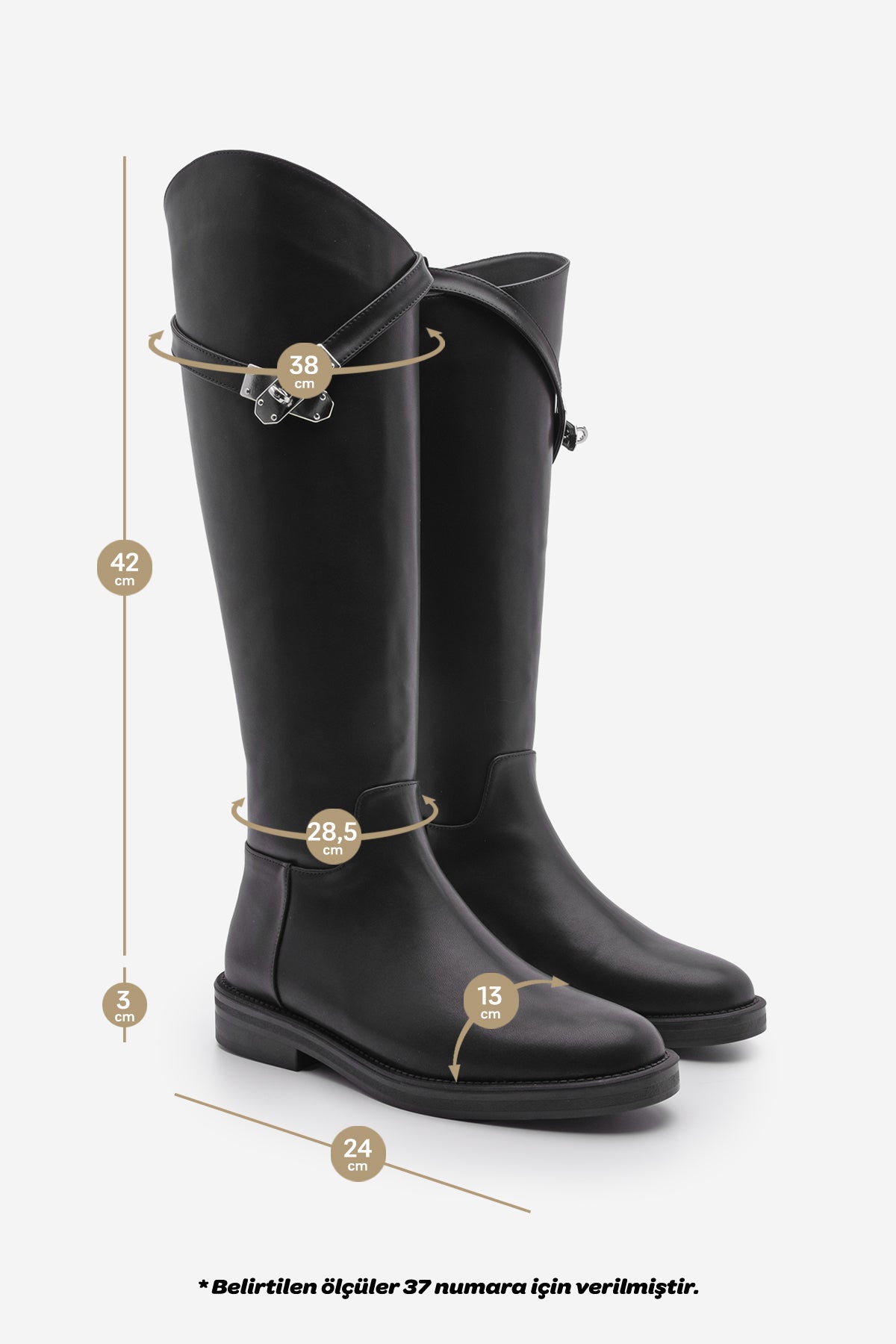 Kadın Küt Burun Topuklu Çizme Doreka - Siyah
