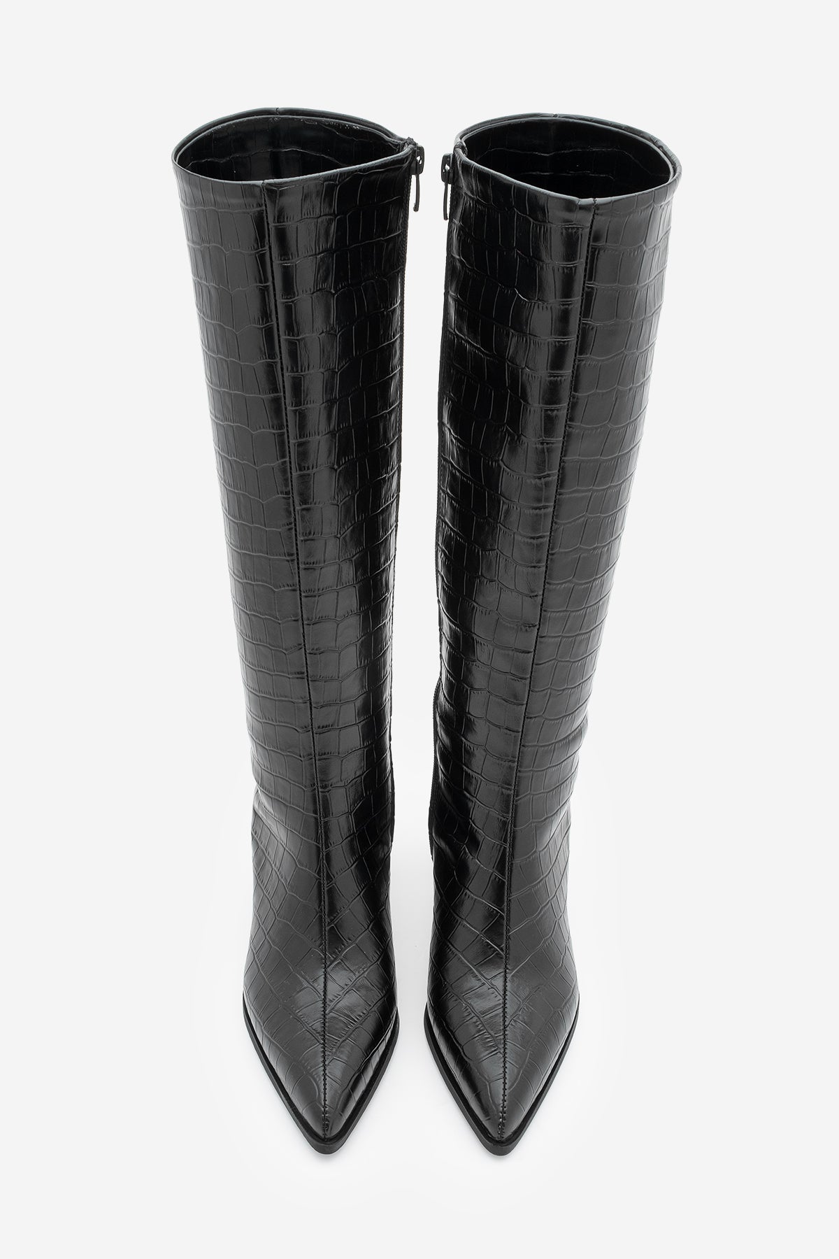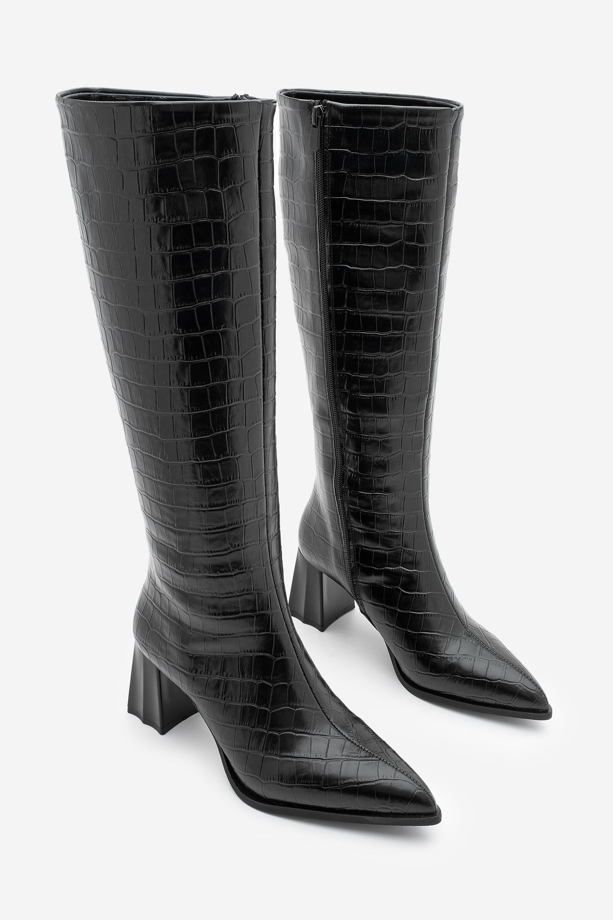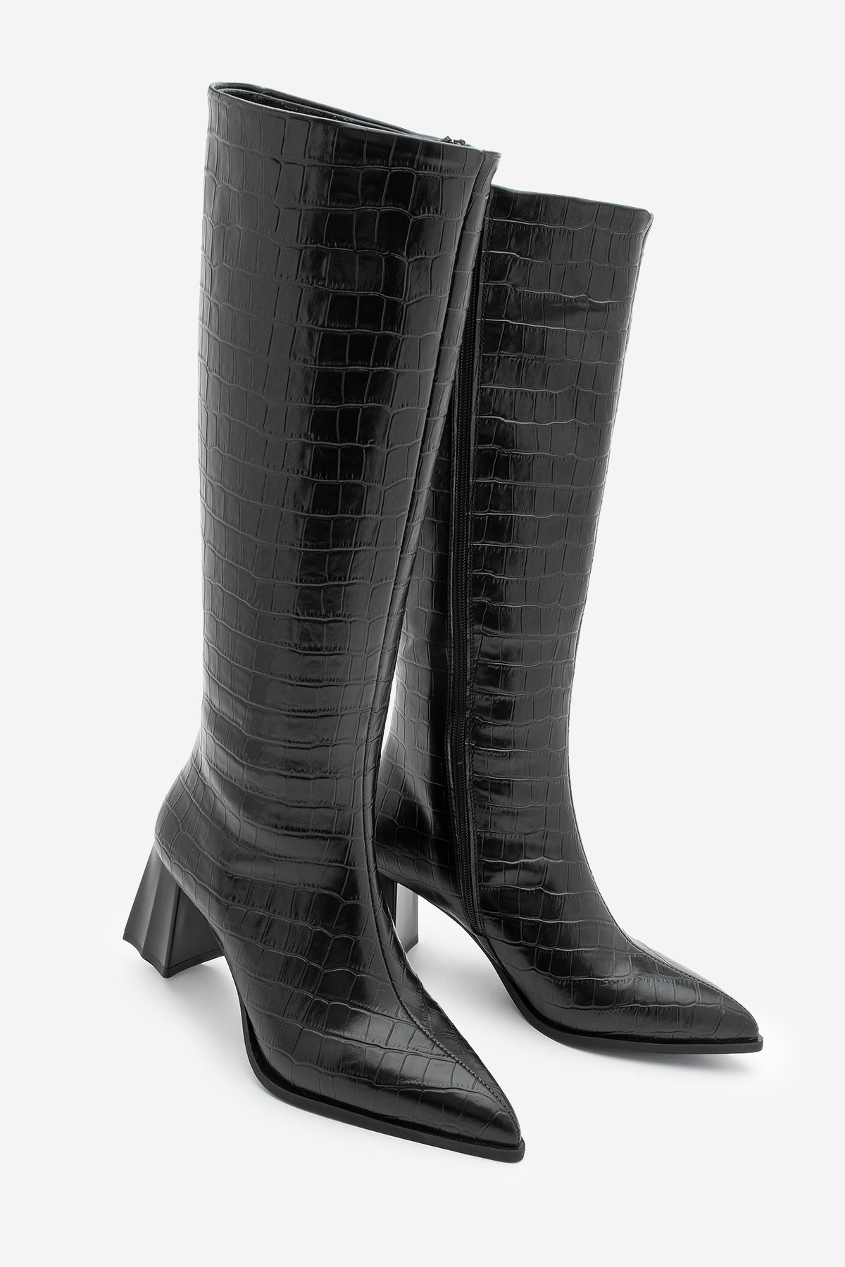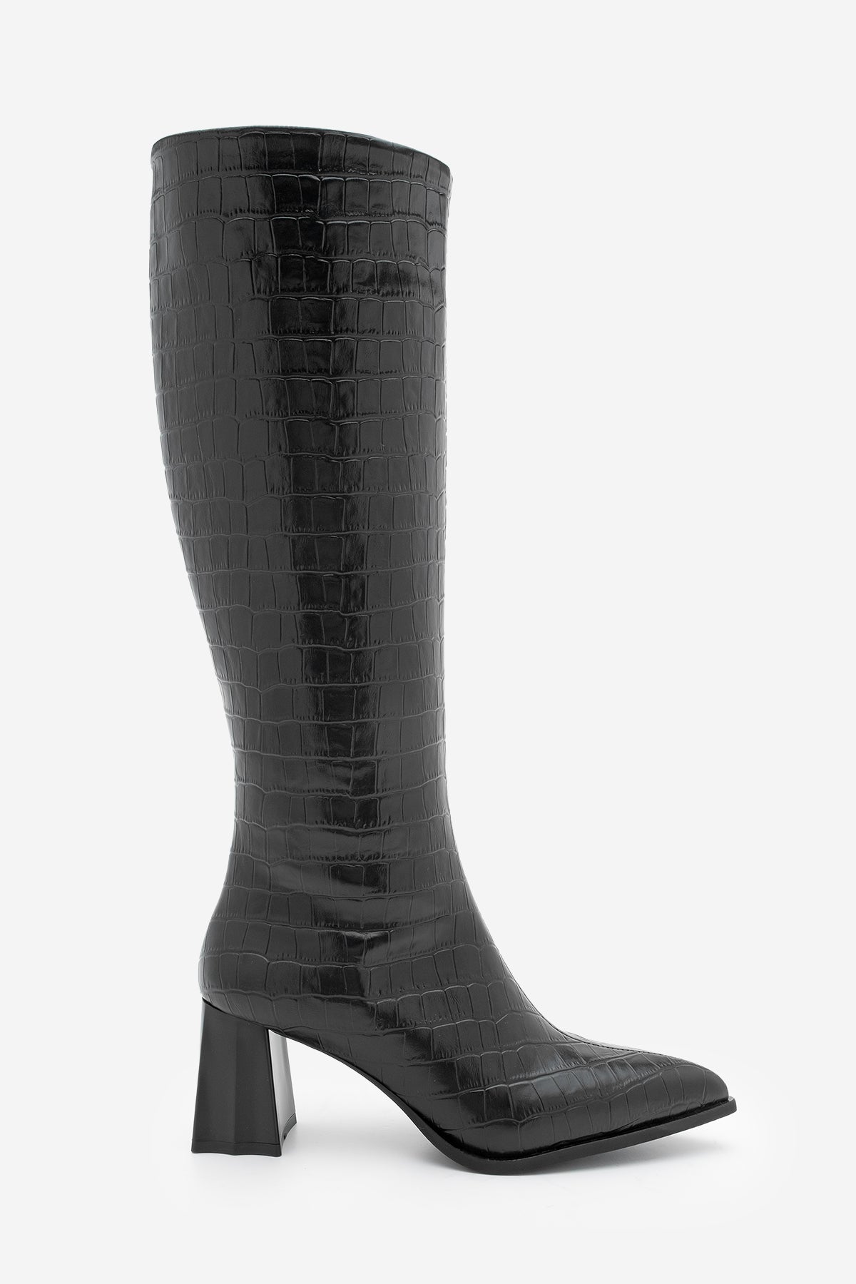 Kadın Sivri Burun Topuklu Çizme Alenta - Siyah Croco
