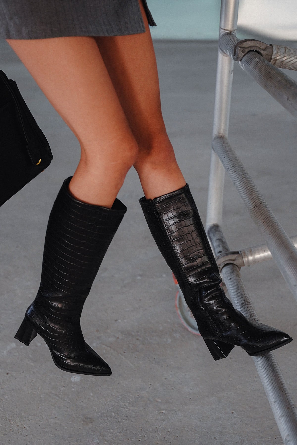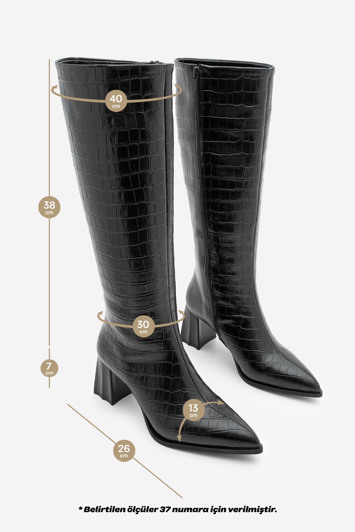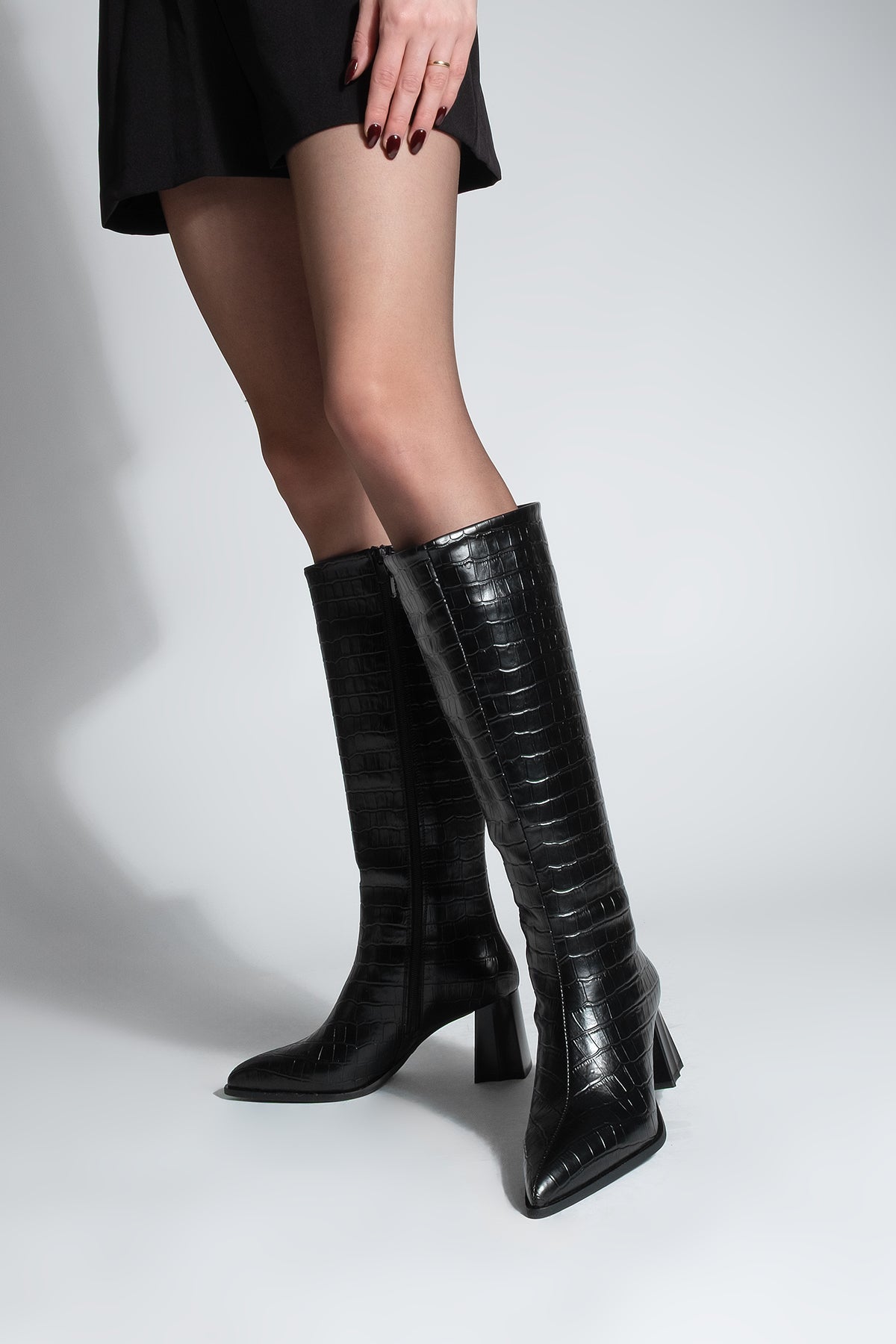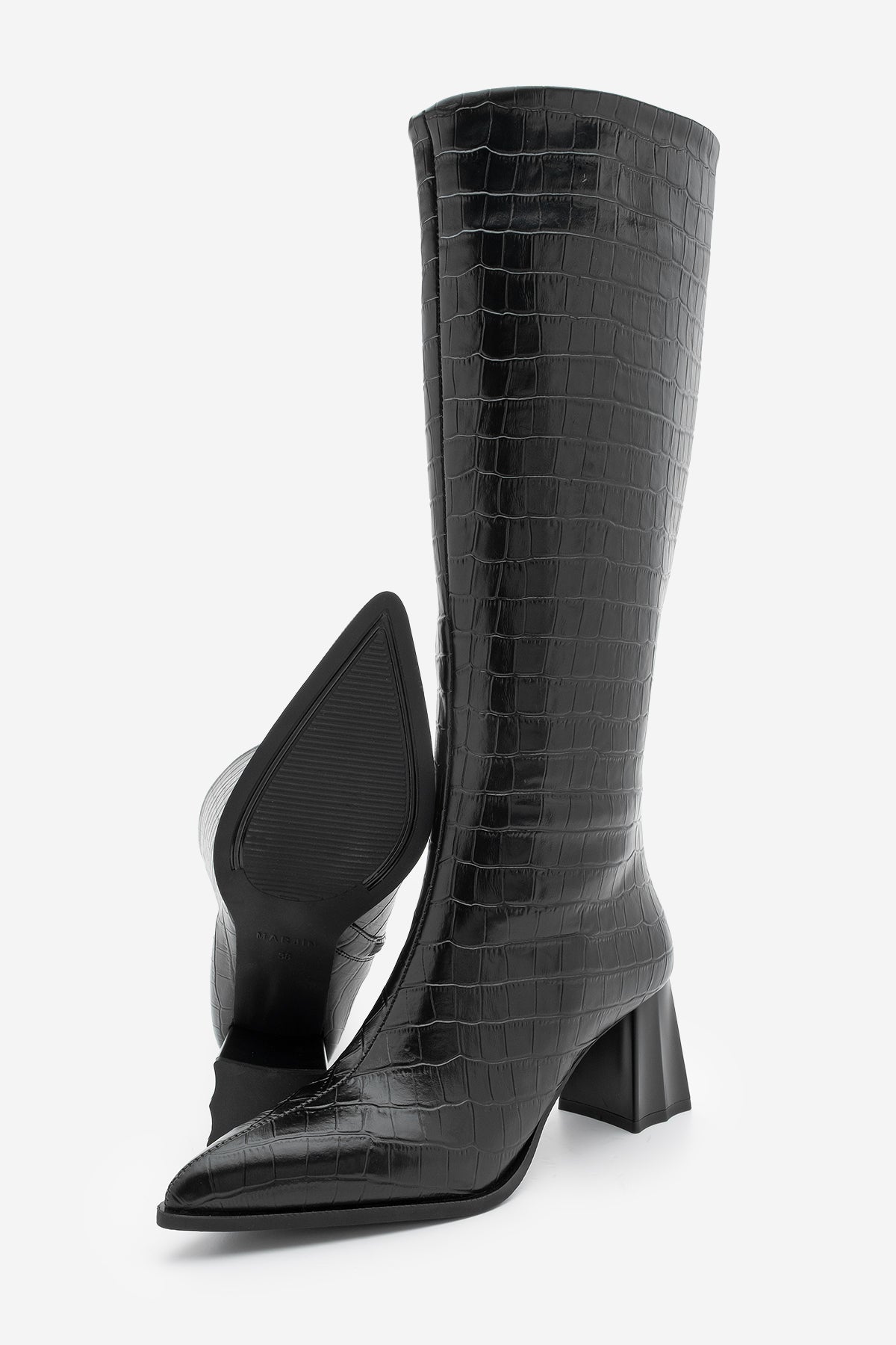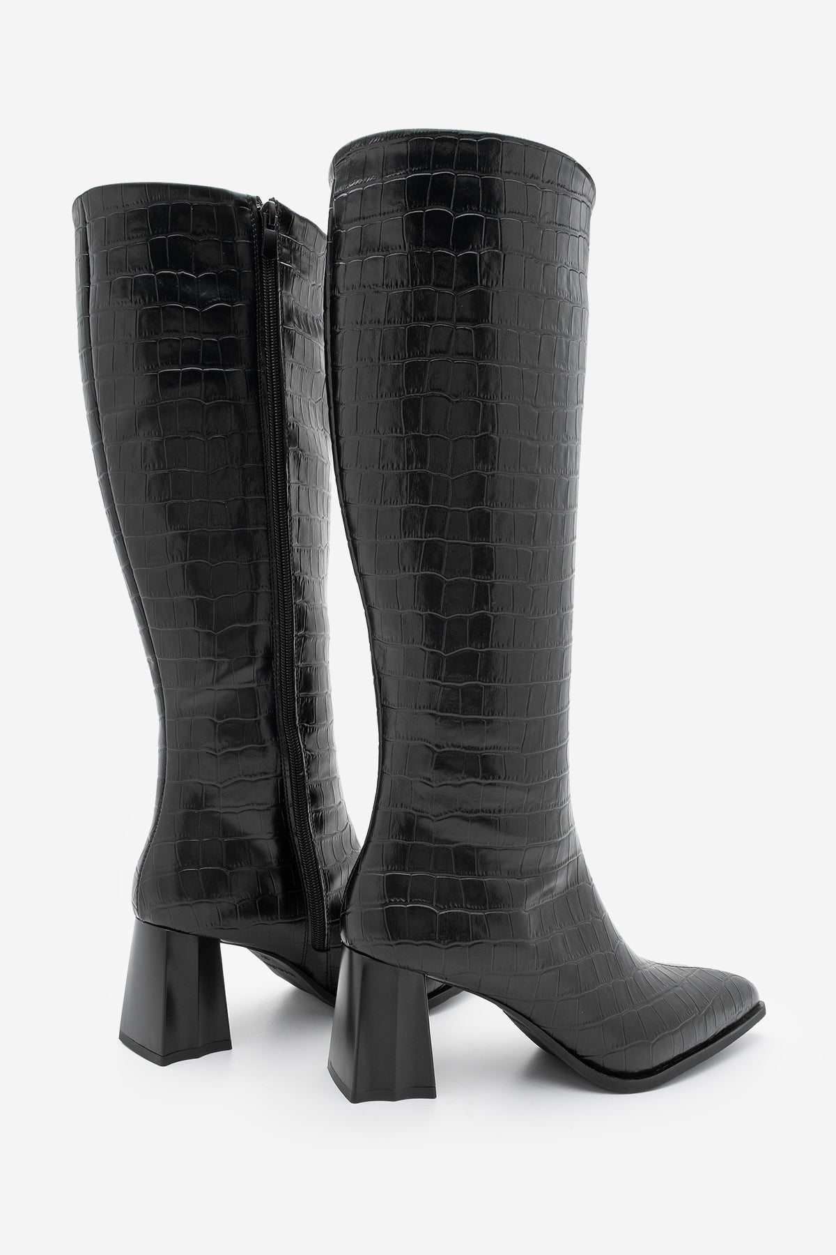 Kadın Sivri Burun Topuklu Çizme Alenta - Siyah Croco