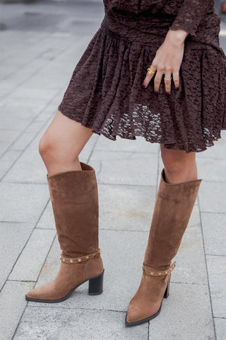 Kadın Sivri Burun Western Çizme Mivez - Kahve Süet