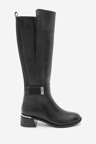 Kadın Tokalı Topuklu Çizme Ayole - Siyah