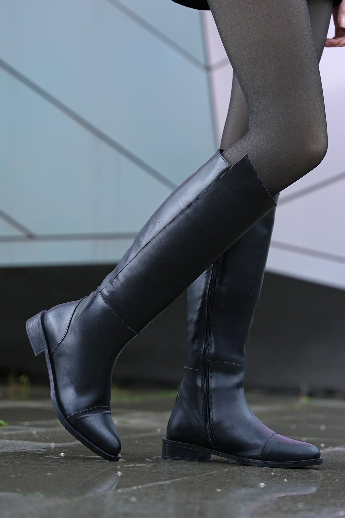 Kadın Hakiki Deri Günlük Çizme Anis - Siyah