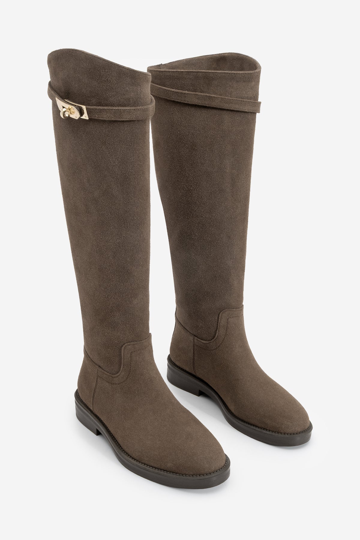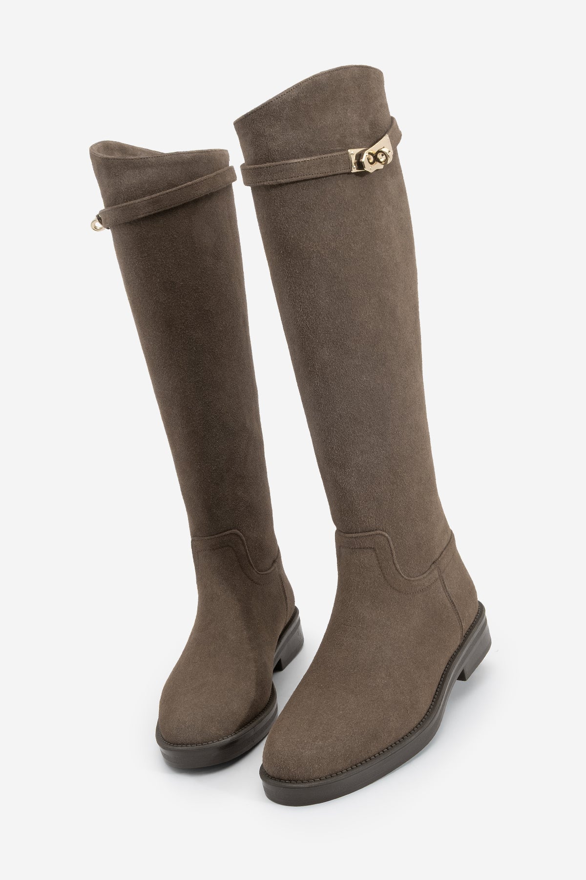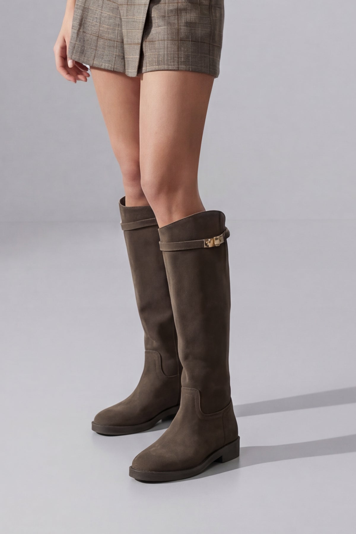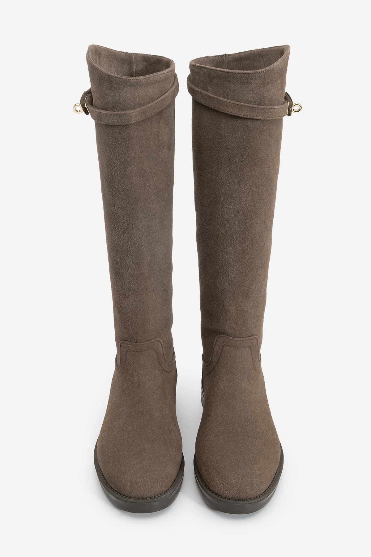 Kadın Tokalı Günlük Çizme Velote - Kahve Süet