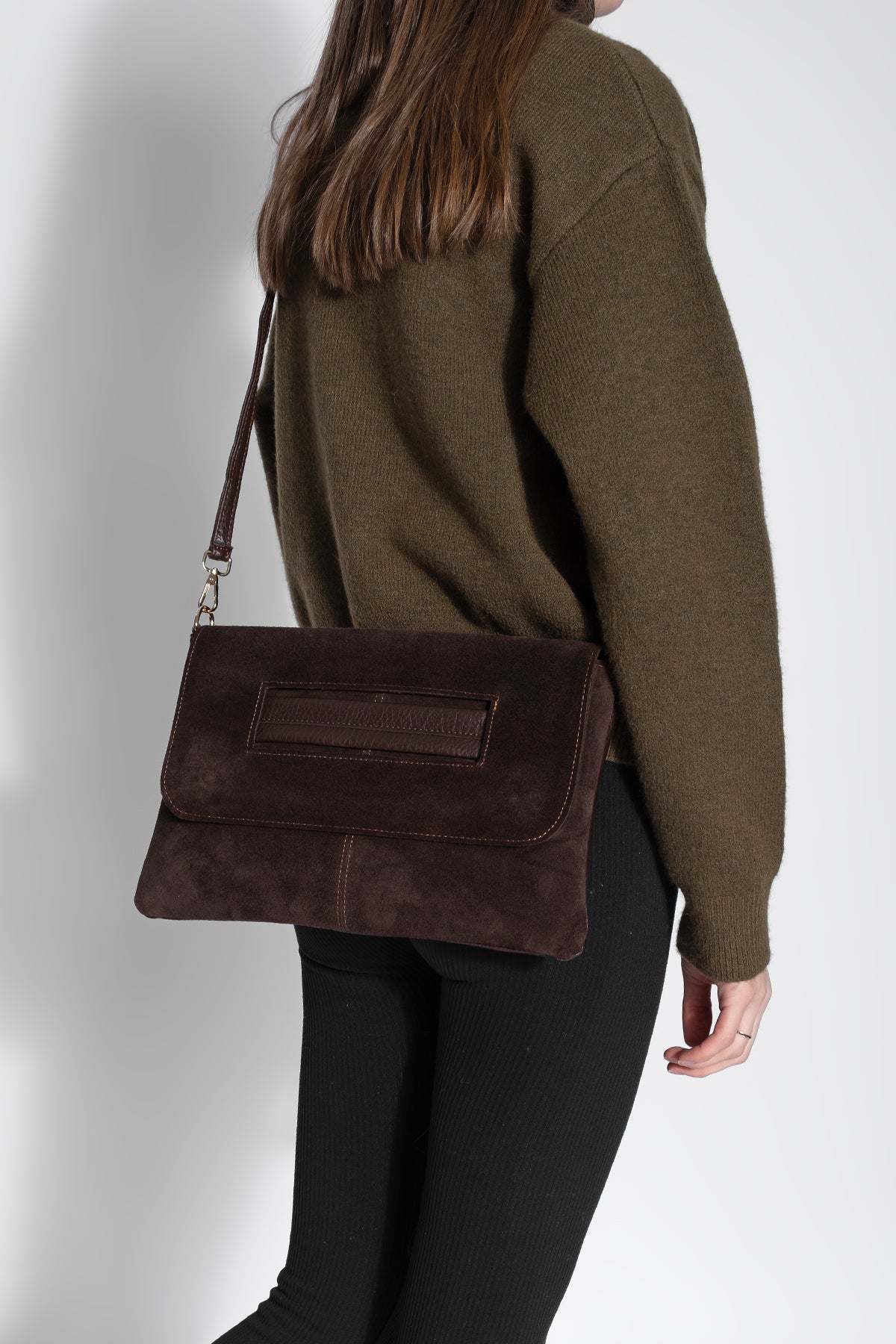 Kadın Hakiki Deri Omuz Çantası Avelin - Kahve Süet
