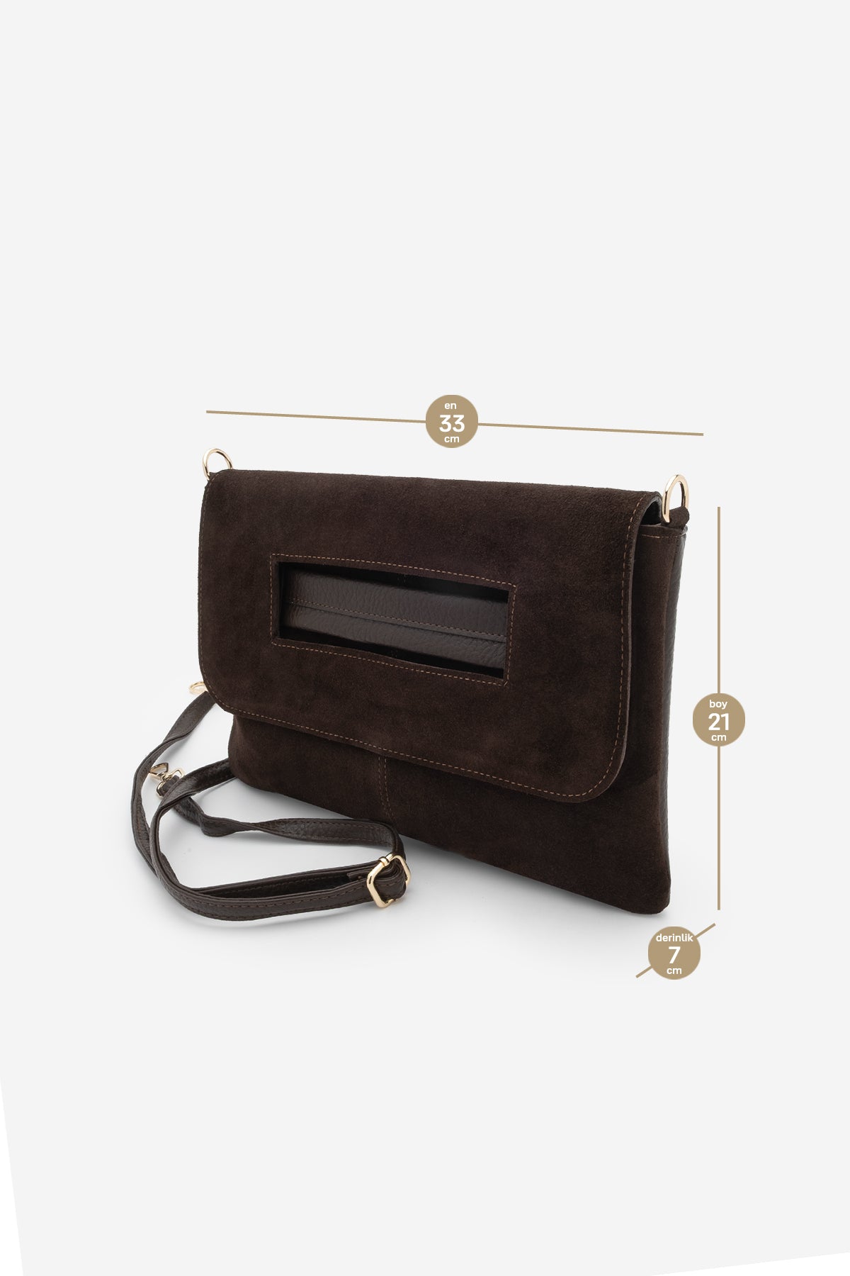 Marjin Kadın Clutch Portföy Çarpaz Askılı El ve Omuz Çantası Sonira: Sade ama iddialı bir duruş arayanlar için tasarlanmış, detaylarıyla farkını hissettiren bir parça. Hakiki deri yüzeyi elde yumuşak ama güçlü bir his bırakırken, süet dokusu tasarıma derinlik katar. Elde taşındığında clutch olarak güçlü bir stil vurgusu yapar; askısı takıldığında ise gün içinde rahatça kullanılabilen fonksiyonel bir alternatife dönüşür. Kapak formu ve ön yüzündeki geçişli detay, tasarıma modern bir karakter kazandırır. Dengeli ölçüleri sayesinde ne fazla iddialı ne de silik durur. Gündüzden geceye uyum sağlayan, kombini tek hamlede yükselten zamansız bir eşlikçidir. Ön yüzeyi hakiki deri, arka yüzeyi suni deri olan çanta modelidir.