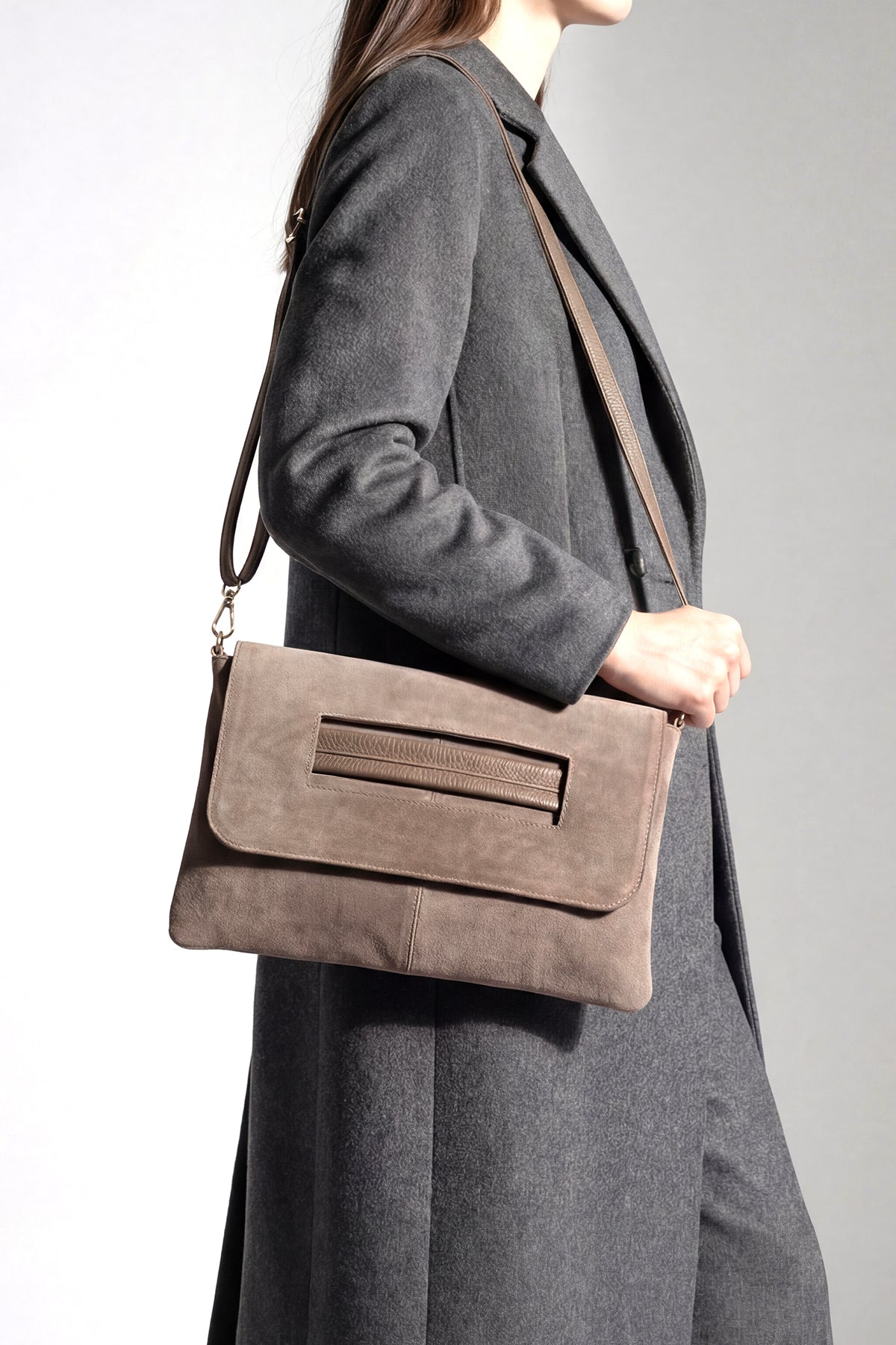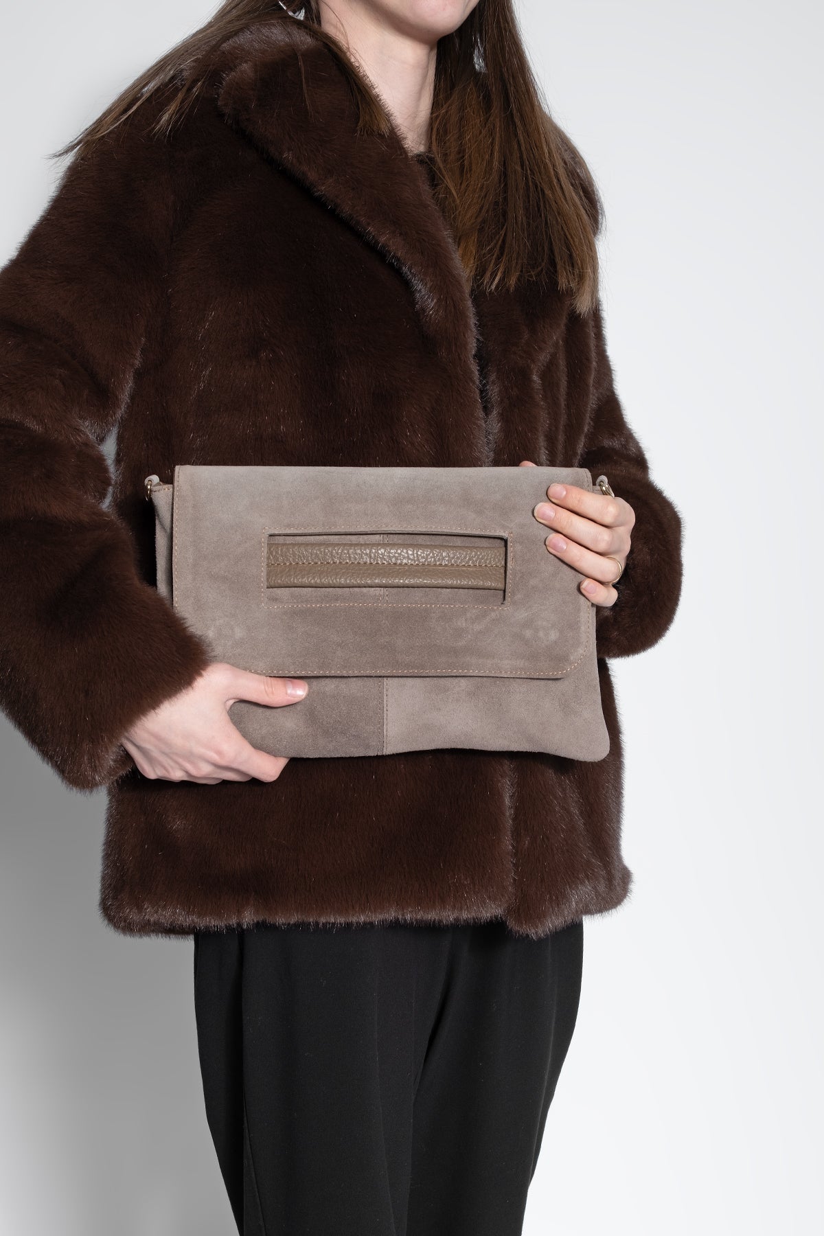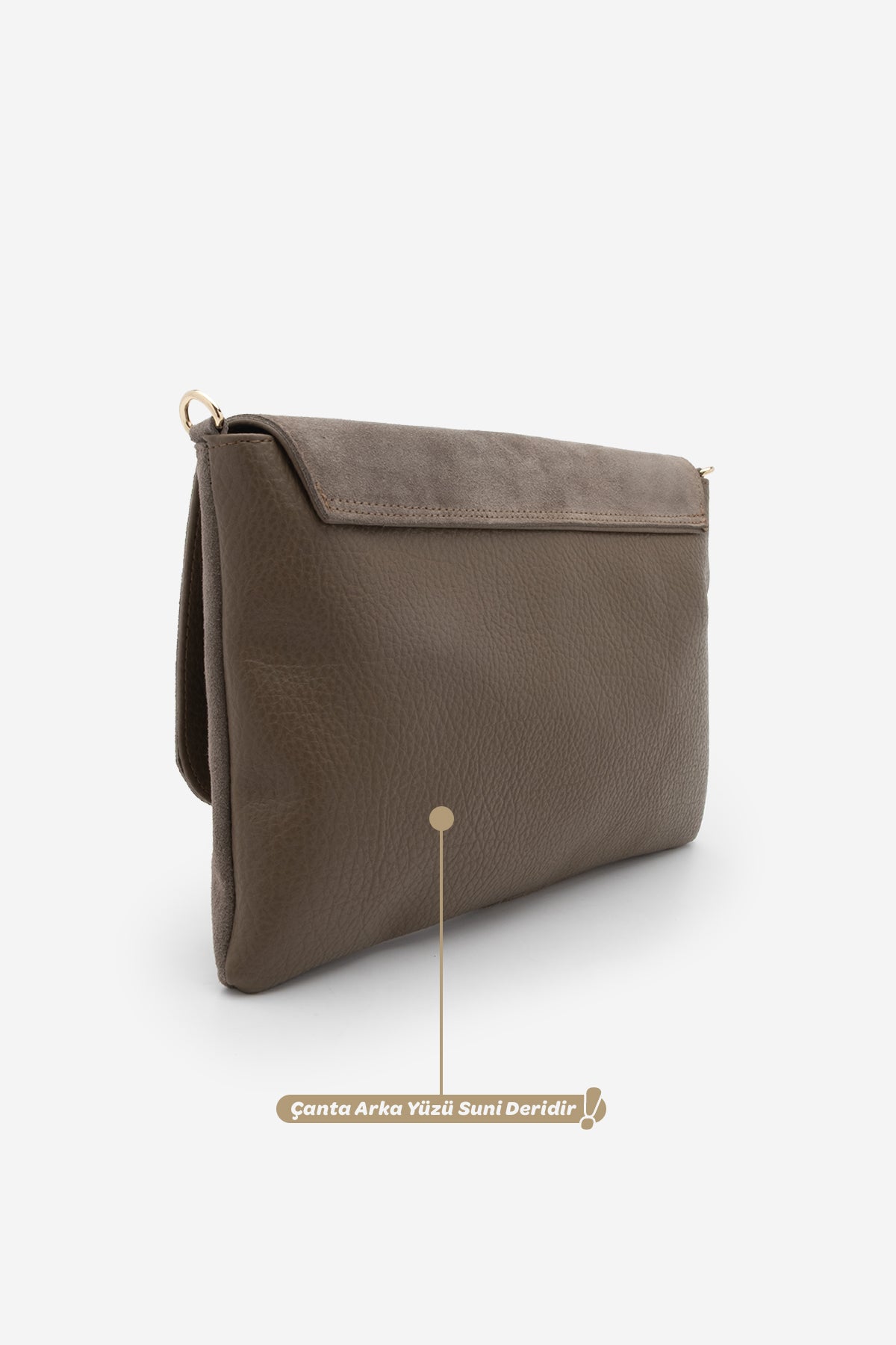 Kadın El ve Omuz Çantası Sonira - Vizon Süet
