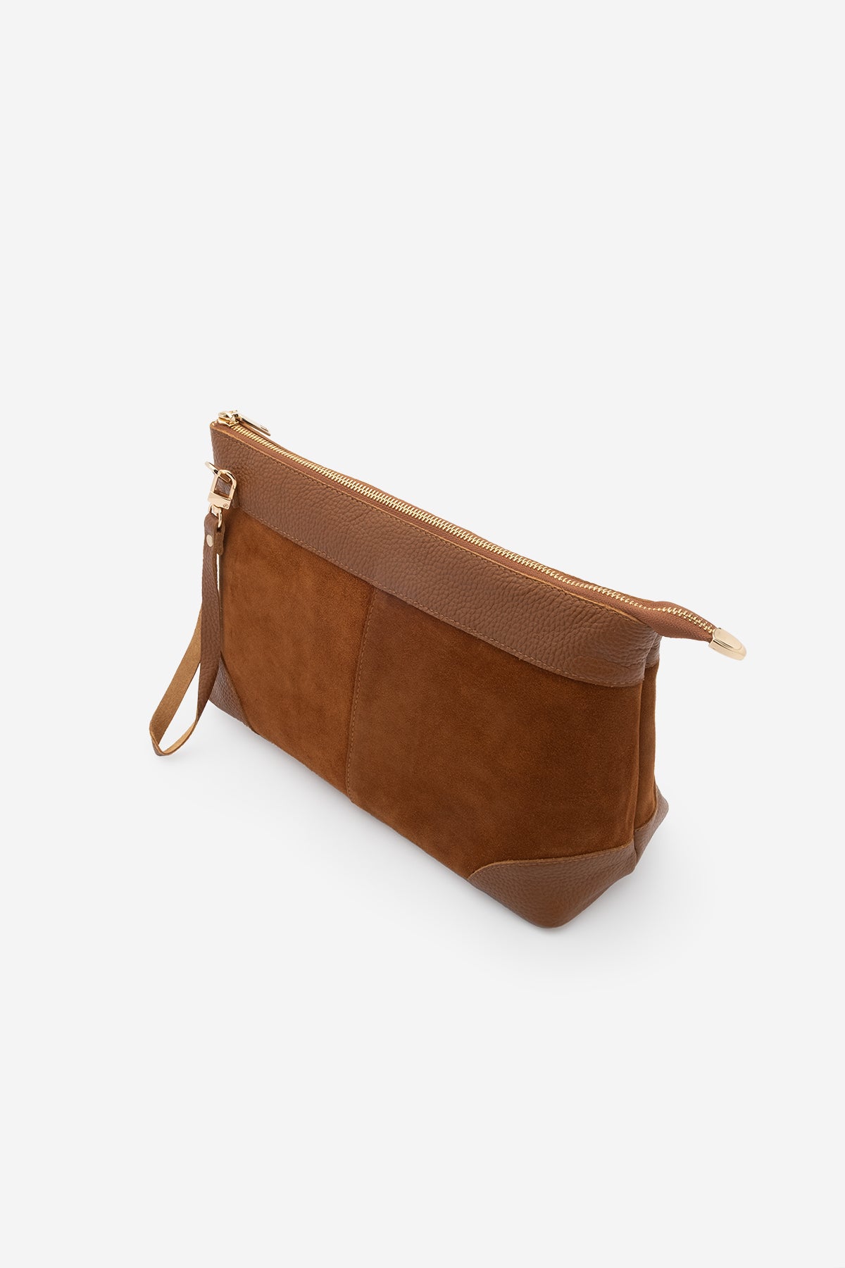 Kadın Hakiki Deri El Çantası Endoz - Taba Süet