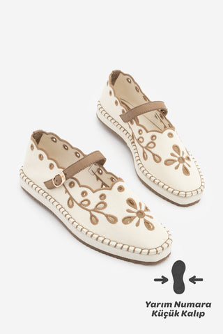 Kadın Nakışlı Bantlı Jüt Espadril Babet Forven - Ekru Keten
