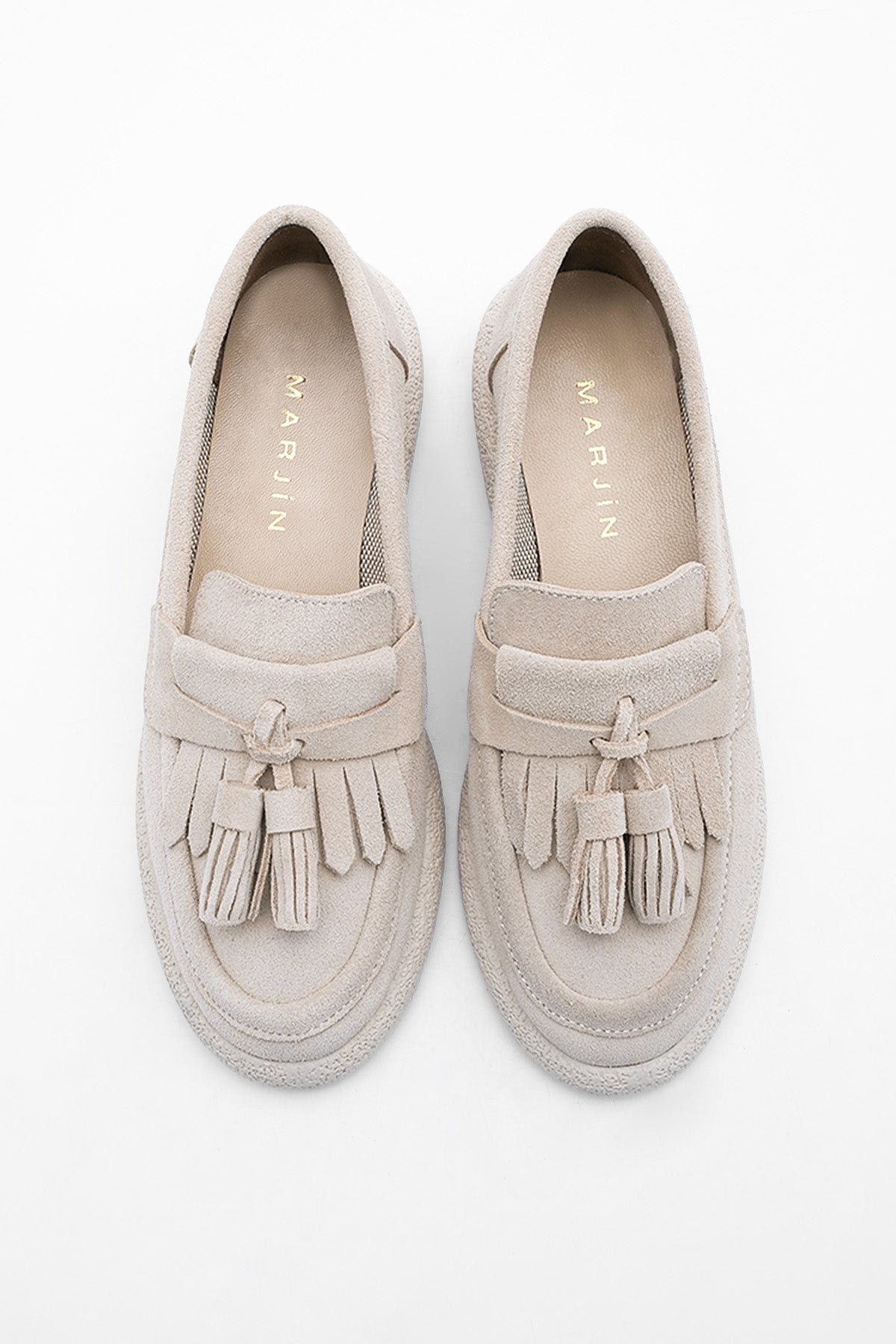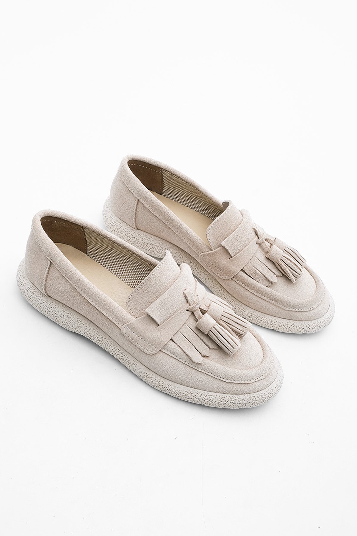 Kadın Hakiki Deri Loafer Günlük Ayakkabı Suma - Bej Süet