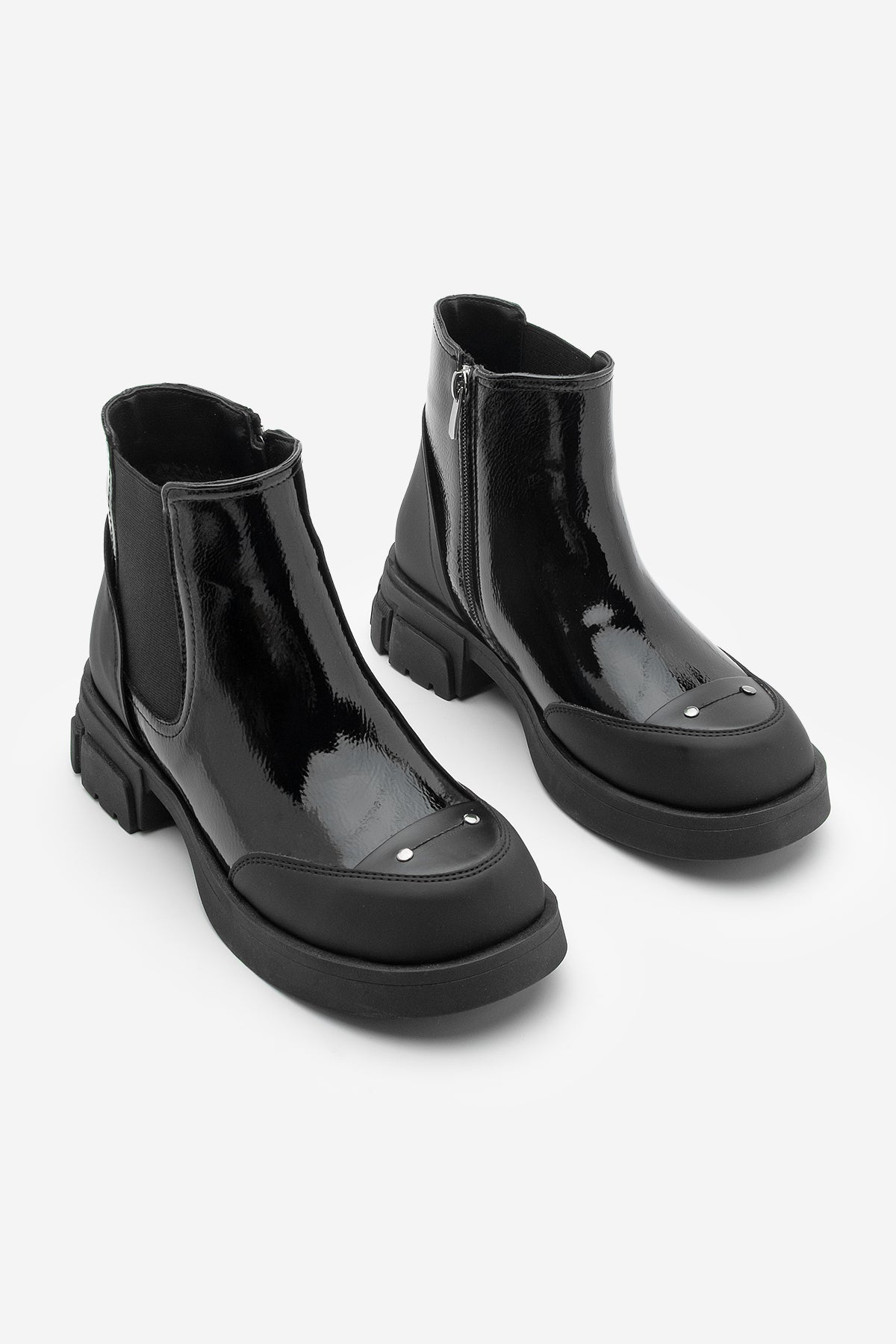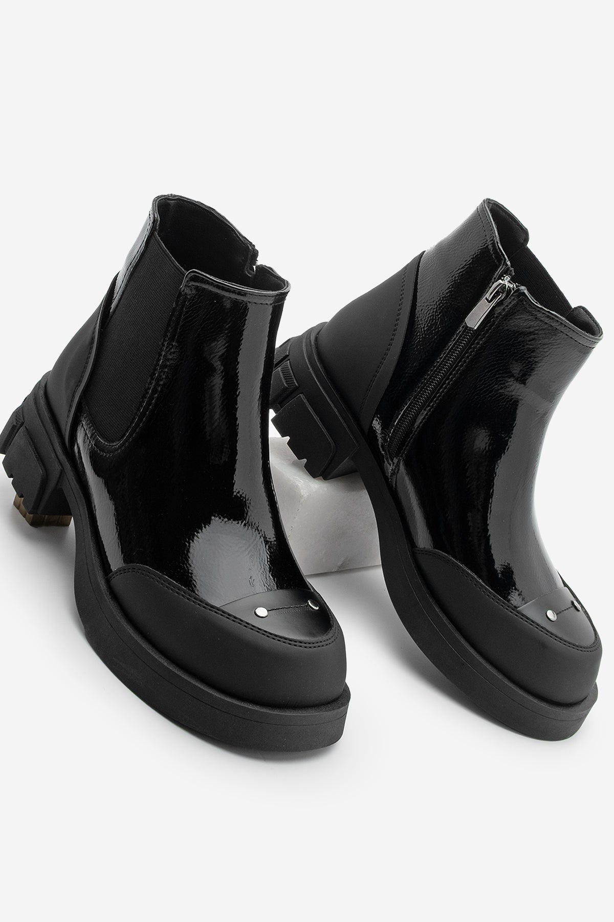 Marjin Kadın Postal Bot Pevara: Parlak deri görünümü ve modern tasarımıyla öne çıkan bu bot, kalın tabanı sayesinde gün boyu rahatlık sunuyor. Fermuarsız yapısı ve yan lastik detayı ile kolayca giyilip çıkarılabilen bu model, hem şehir yaşamında hem de günlük kullanımda pratiklik sağlıyor.Sağlam tabanı ile soğuk havalarda güvenli adımlar atmanıza yardımcı olan bu bot, modern havasıyla kombinlerinize güçlü bir dokunuş katıyor. Siyah tonunun zamansız duruşu, bu modeli her kombine kolayca uyumlu hale getiriyor. Günlük stilinizden özel anlarınıza kadar birçok ortamda size eşlik edecek.