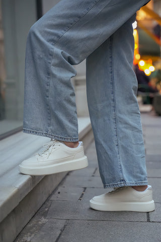 Kadın Sneaker Yüksek Taban Bağcıklı Spor Ayakkabı Domen - Beyaz