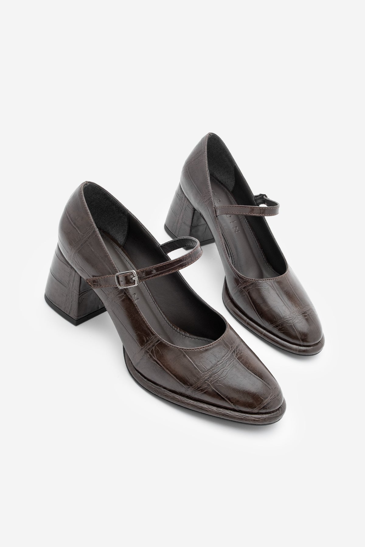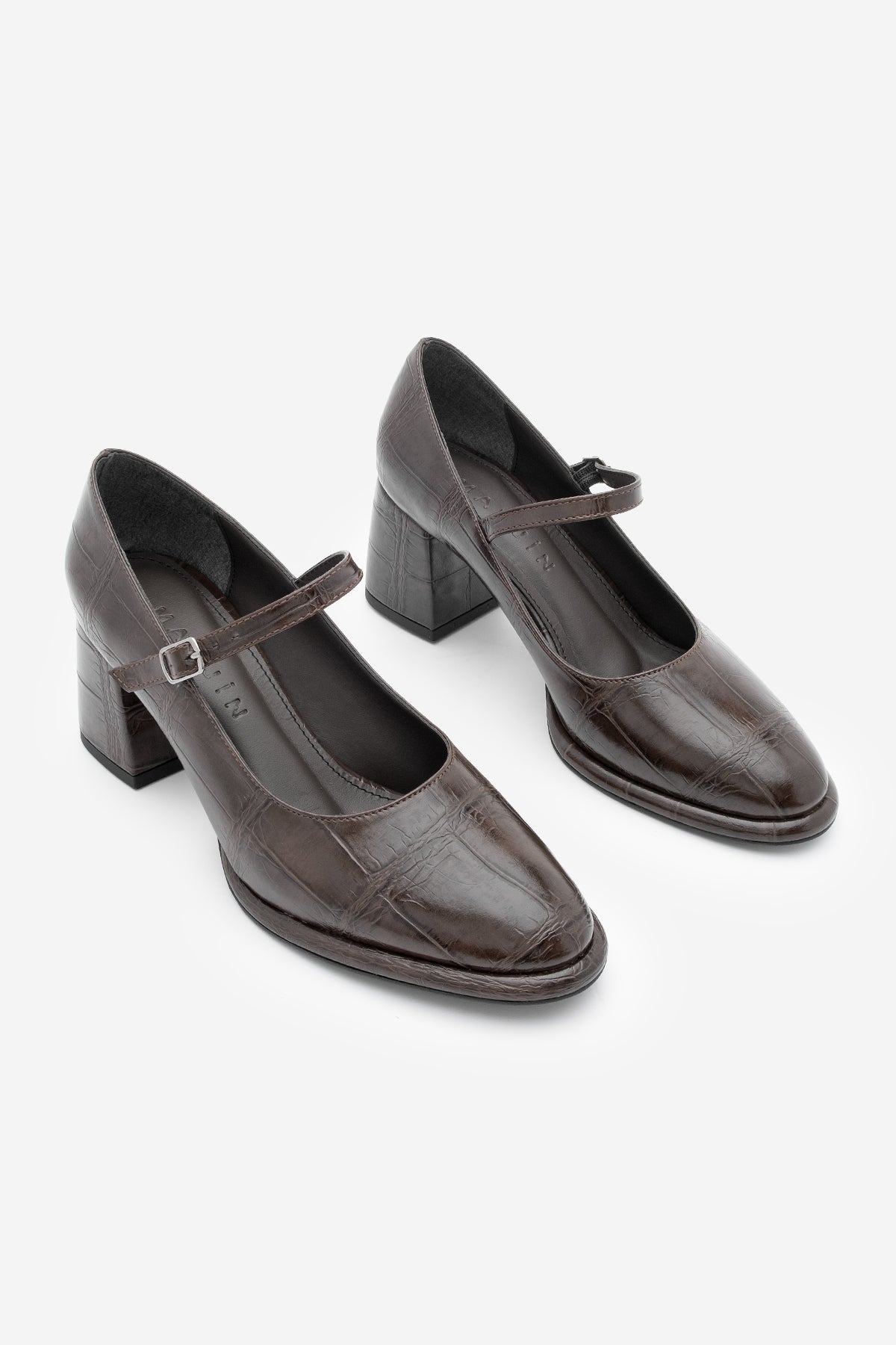 Kadın Loafer Günlük Topuklu Ayakkabı Vikas - Kahve Croco