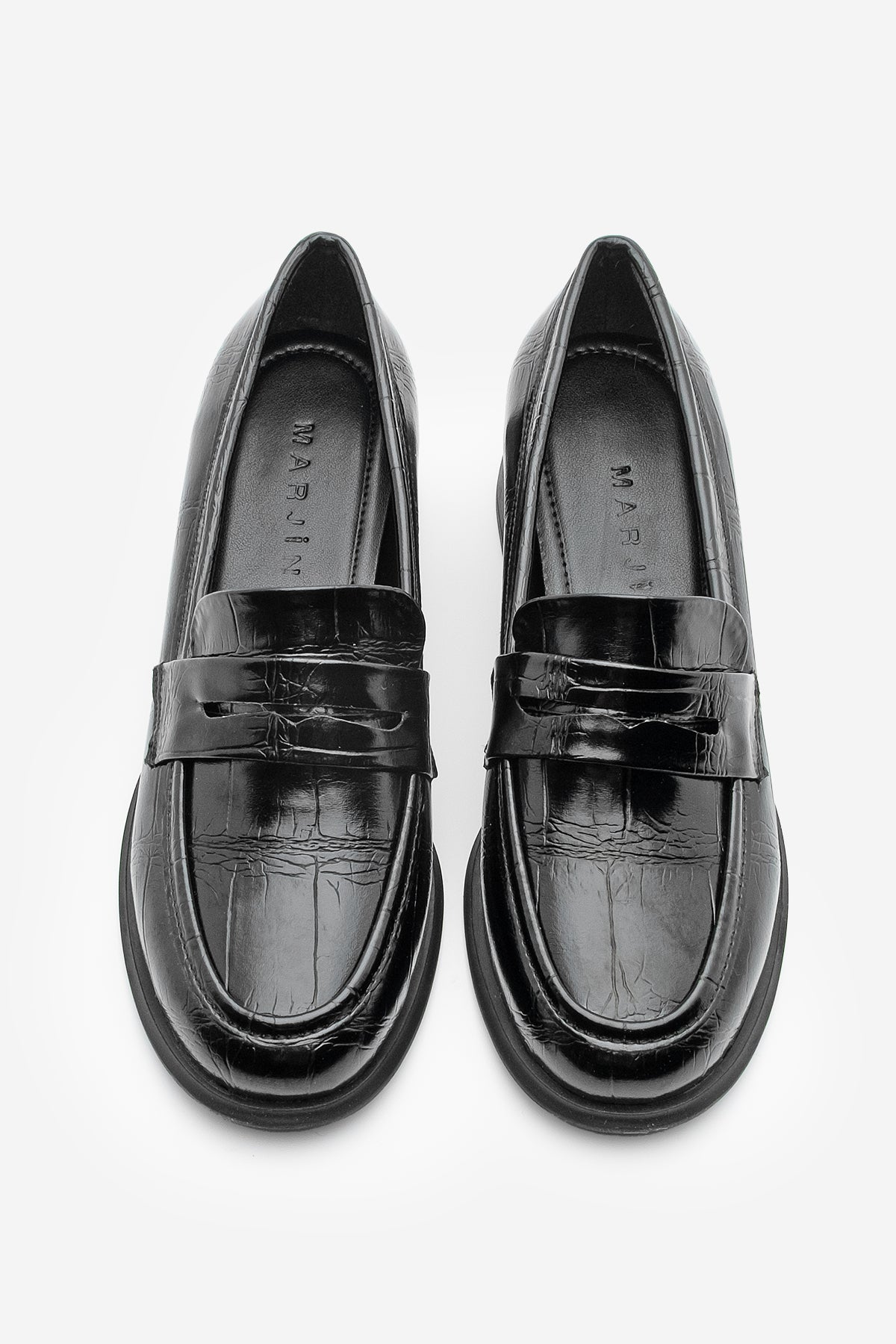 Marjin Kadın Kalın Topuklu Loafer Croco Günlük Ayakkabı Nufit: Zamansız loafer stiline modern bir yorum katan Nufit, croco desenli yüzeyiyle güçlü bir duruş sergiliyor. Kalın topuk yapısı sayesinde gün boyu konfor sunarken, şık formu ile hem günlük hem de ofis kombinlerinde kolayca kullanılabiliyor. Siyah ve kahve renk alternatifleri sayesinde farklı kombinlere uyum sağlayan bu model, klasik loafer rahatlığını trend detaylarla buluşturuyor. Şehir stilinden ofis hayatına kadar her ortamda şık bir tamamlayıcı olarak öne çıkıyor.