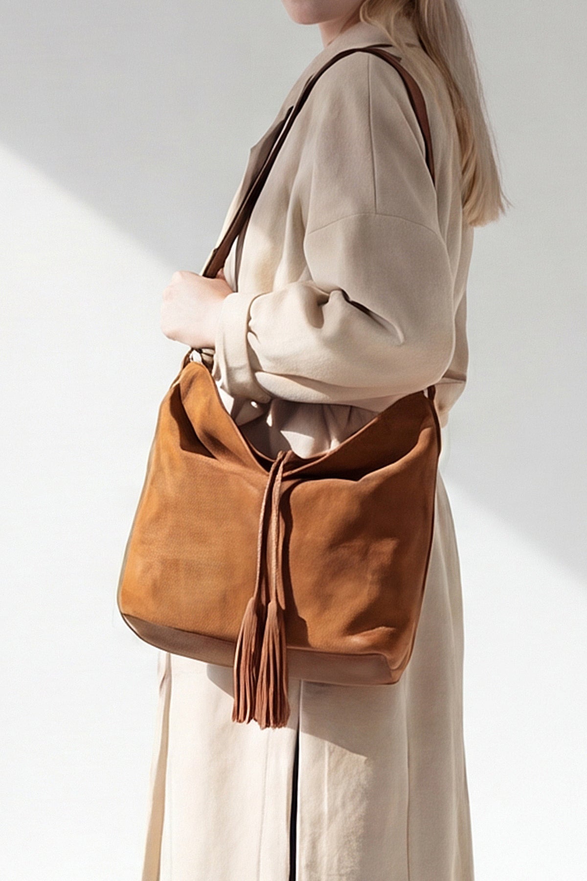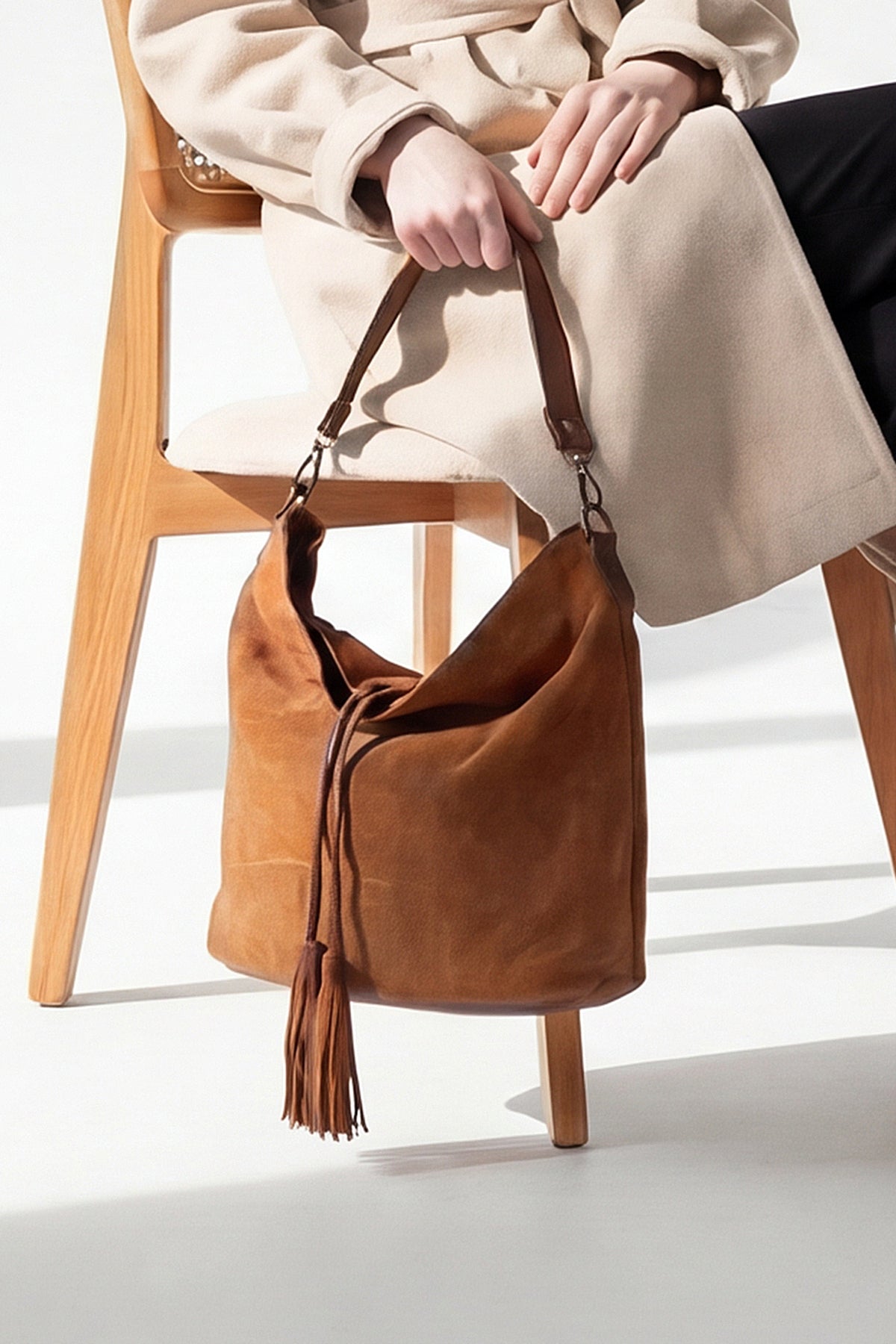 Kadın Hakiki Deri Omuz Çantası Olven - Taba Süet