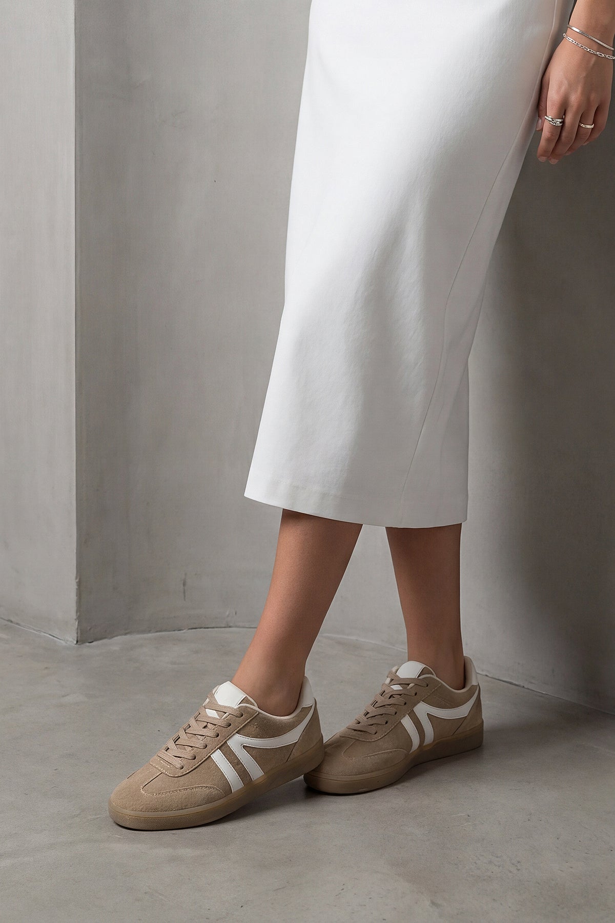 Kadın Sneaker Bağcıklı Spor Ayakkabı Tiyone - Camel Süet