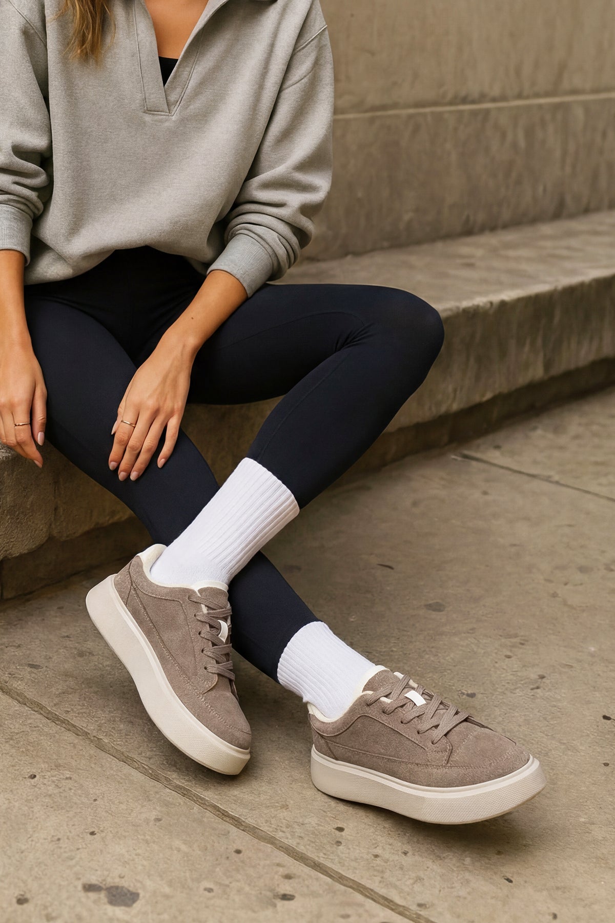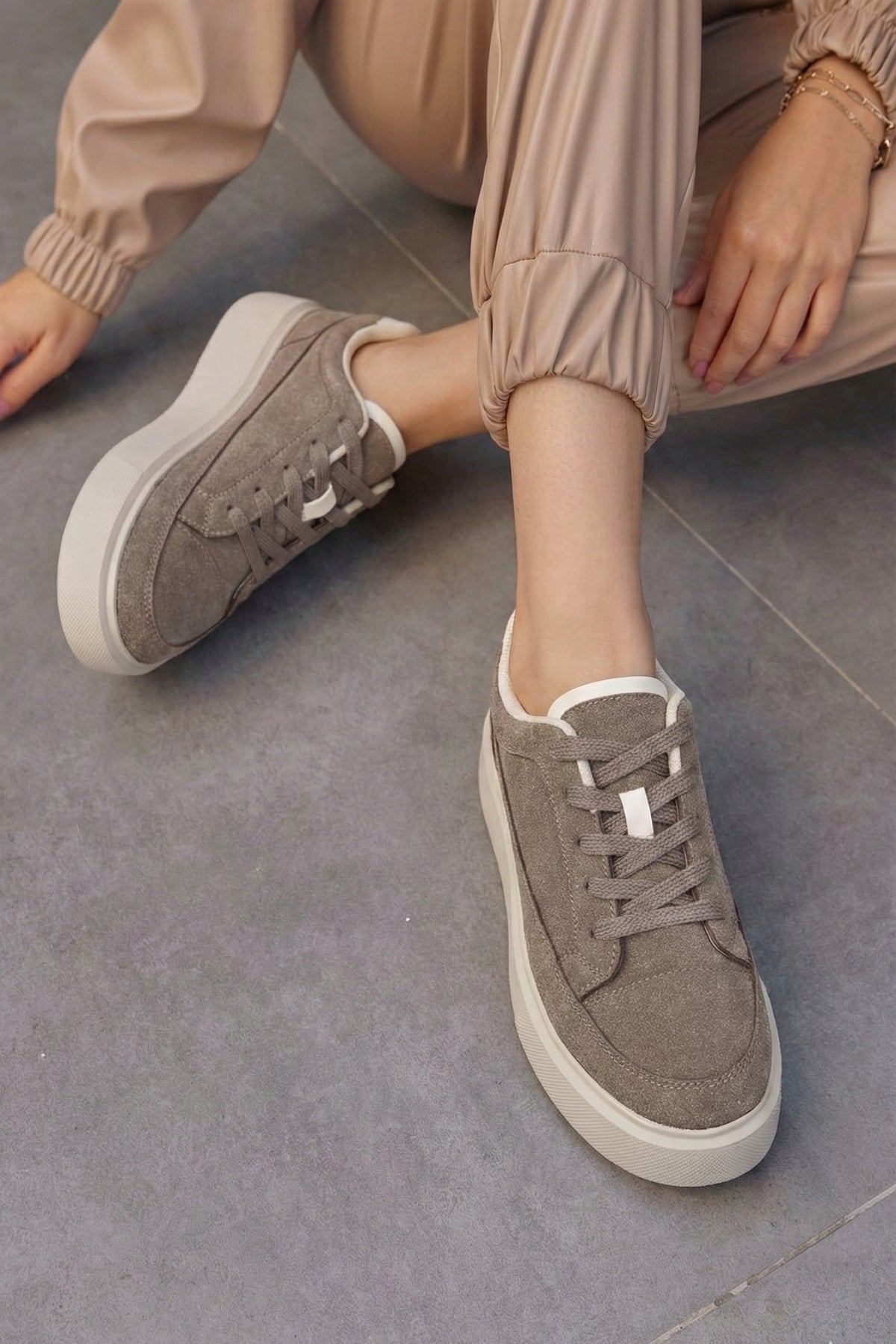 Kadın Sneaker Kalın Taban Spor Ayakkabı Domen - Vizon Süet