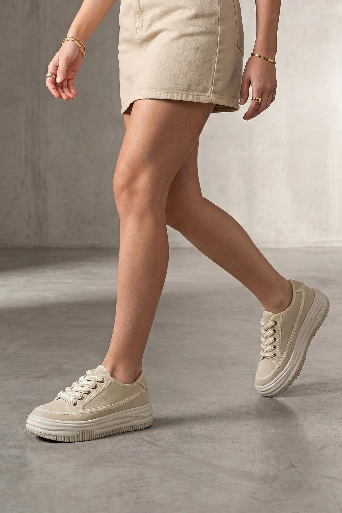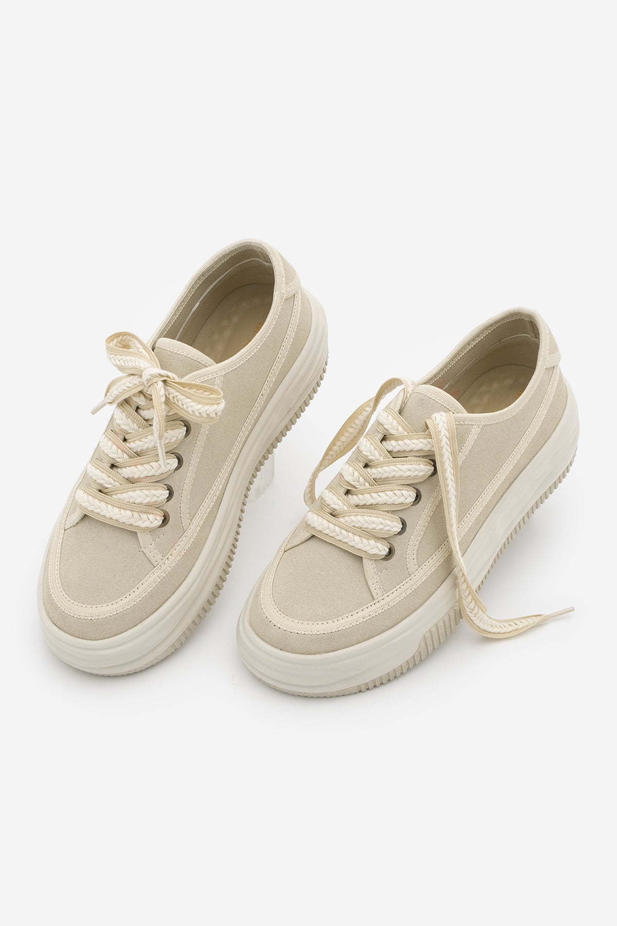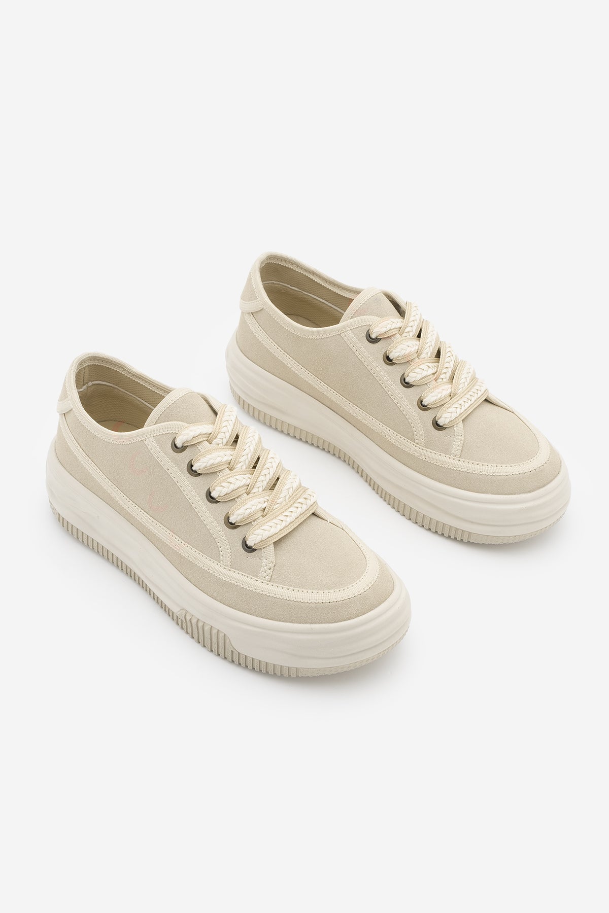 Kadın Sneaker Kalın Taban Spor Ayakkabı Kotnel - Bej Süet