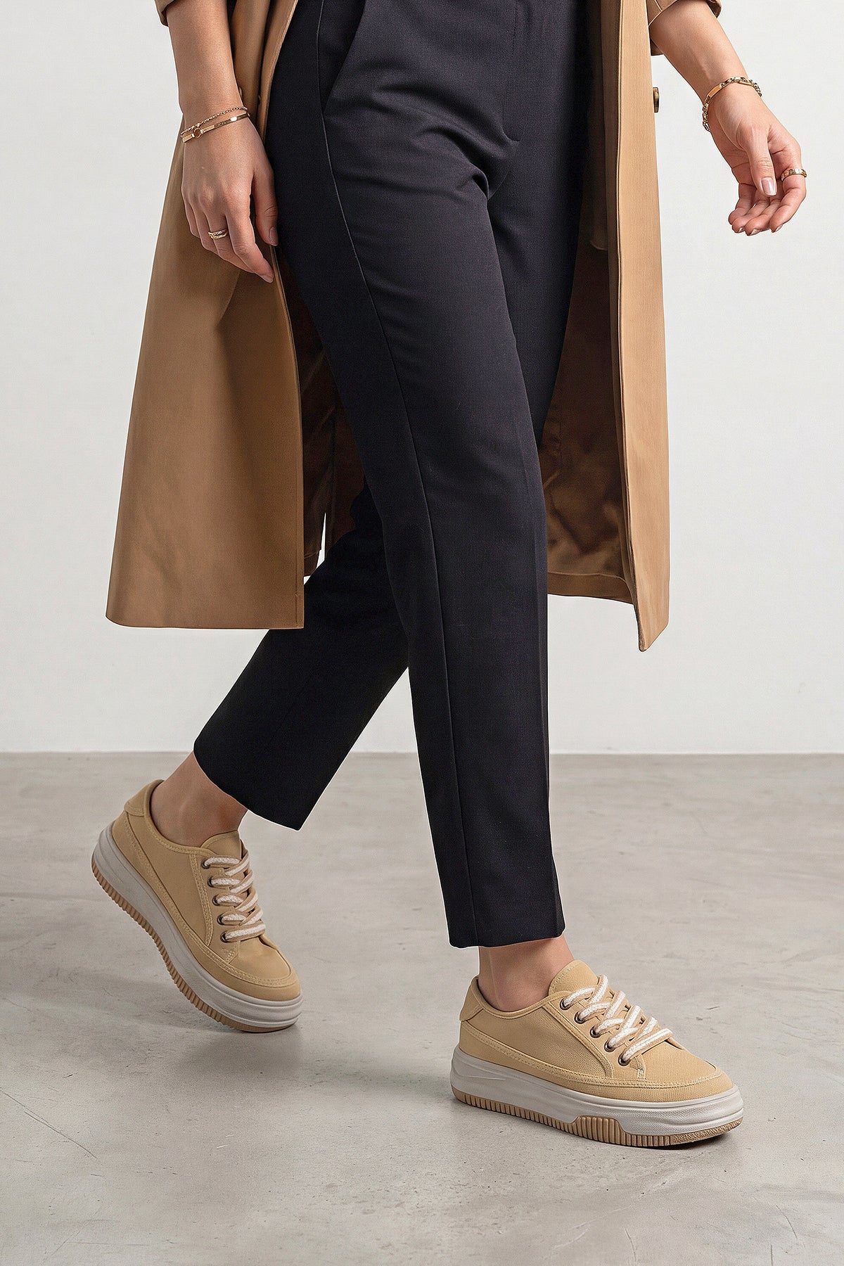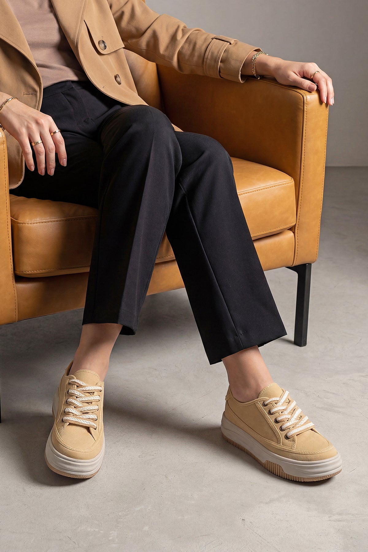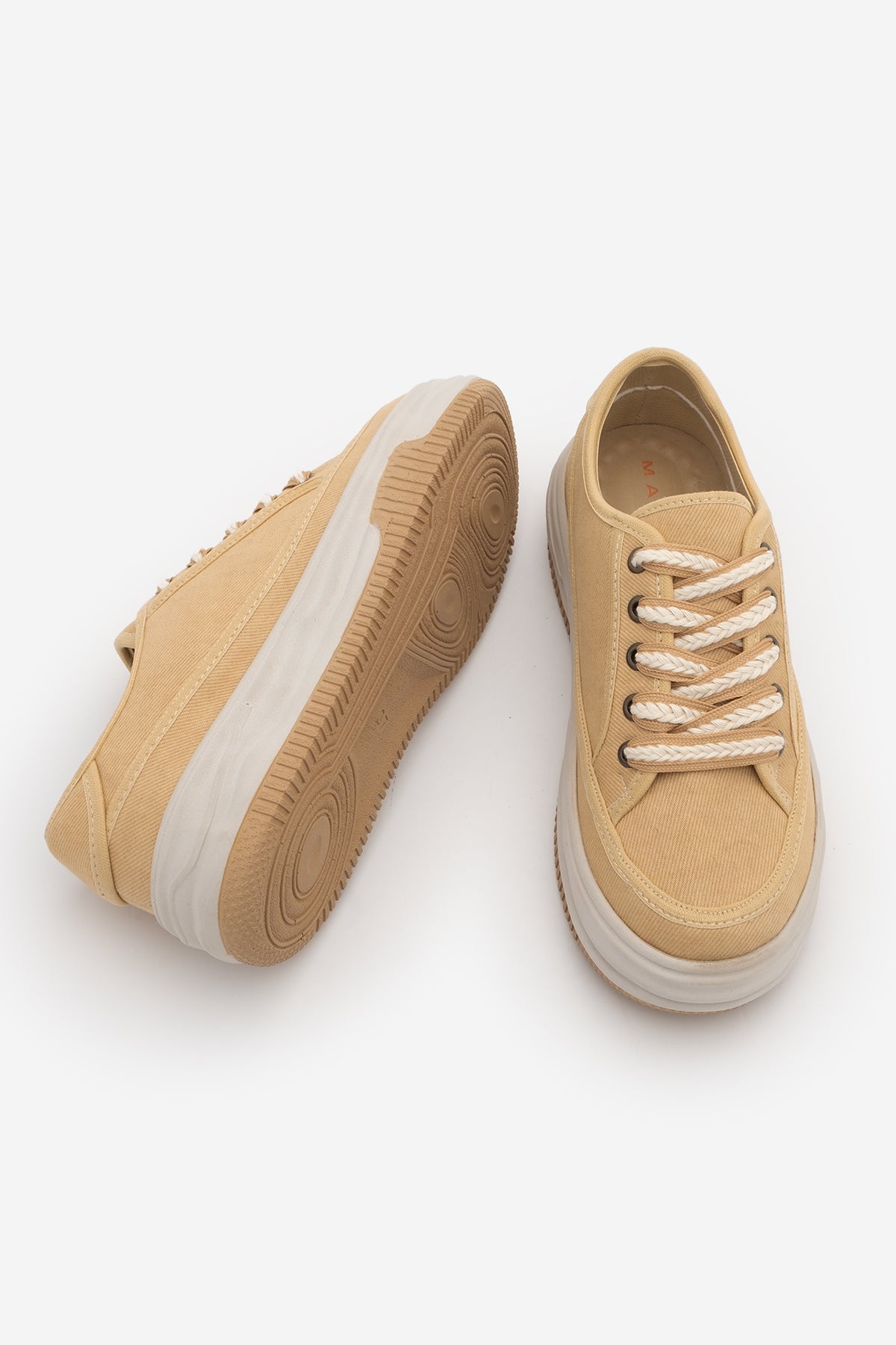 Kadın Sneaker Kalın Taban Spor Ayakkabı Kotnel - Sarı Keten