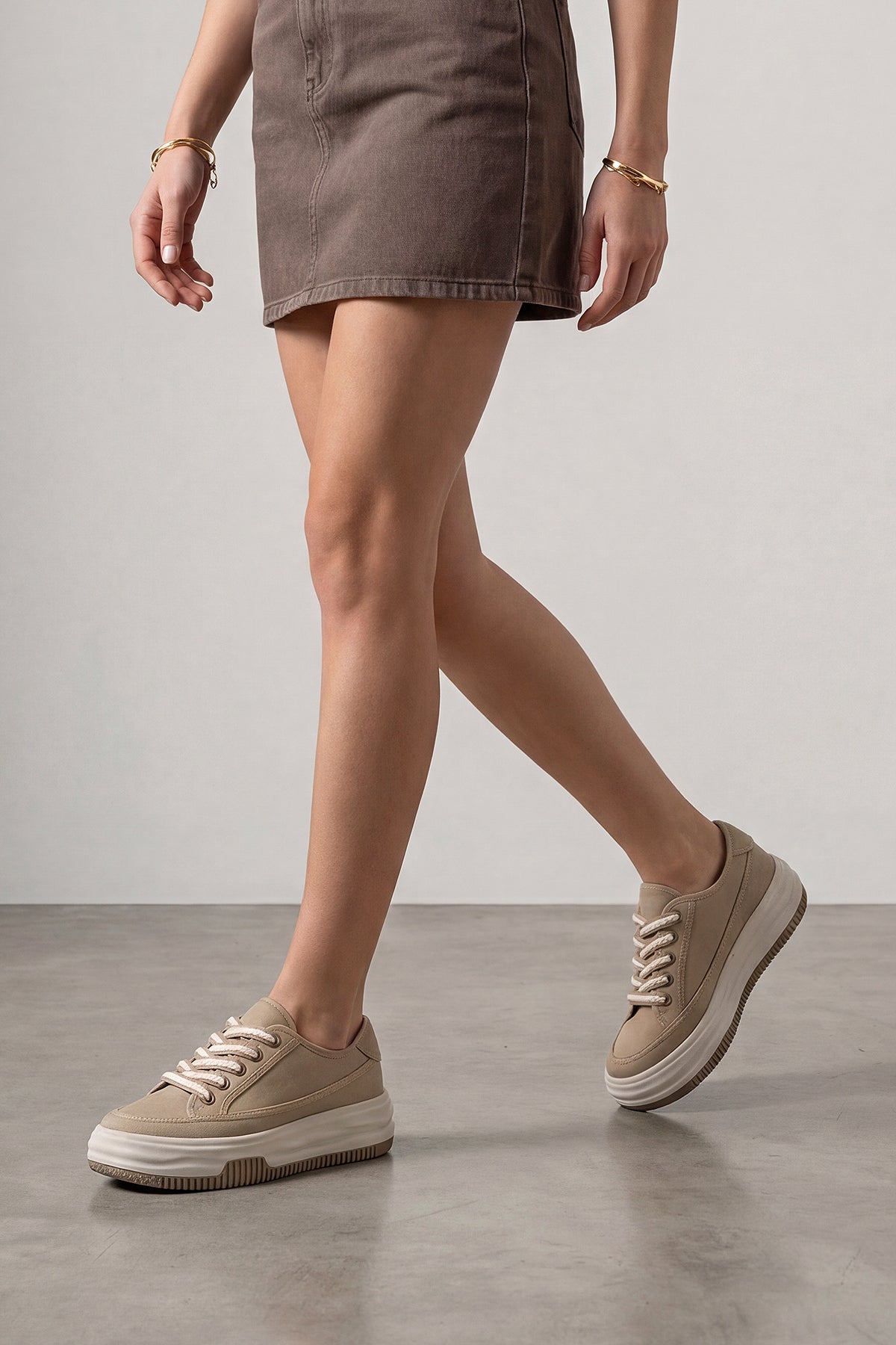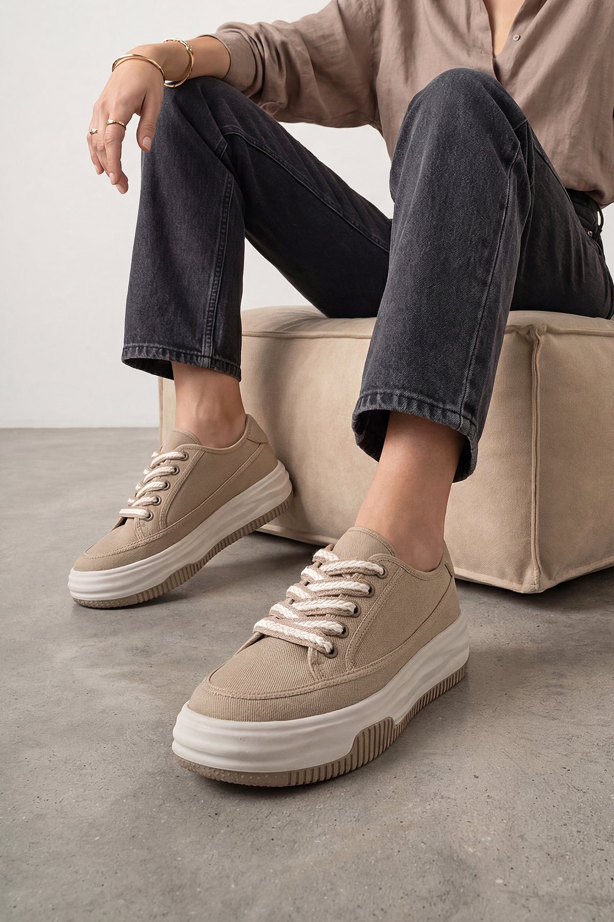 Kadın Sneaker Kalın Taban Spor Ayakkabı Kotnel - Vizon Keten