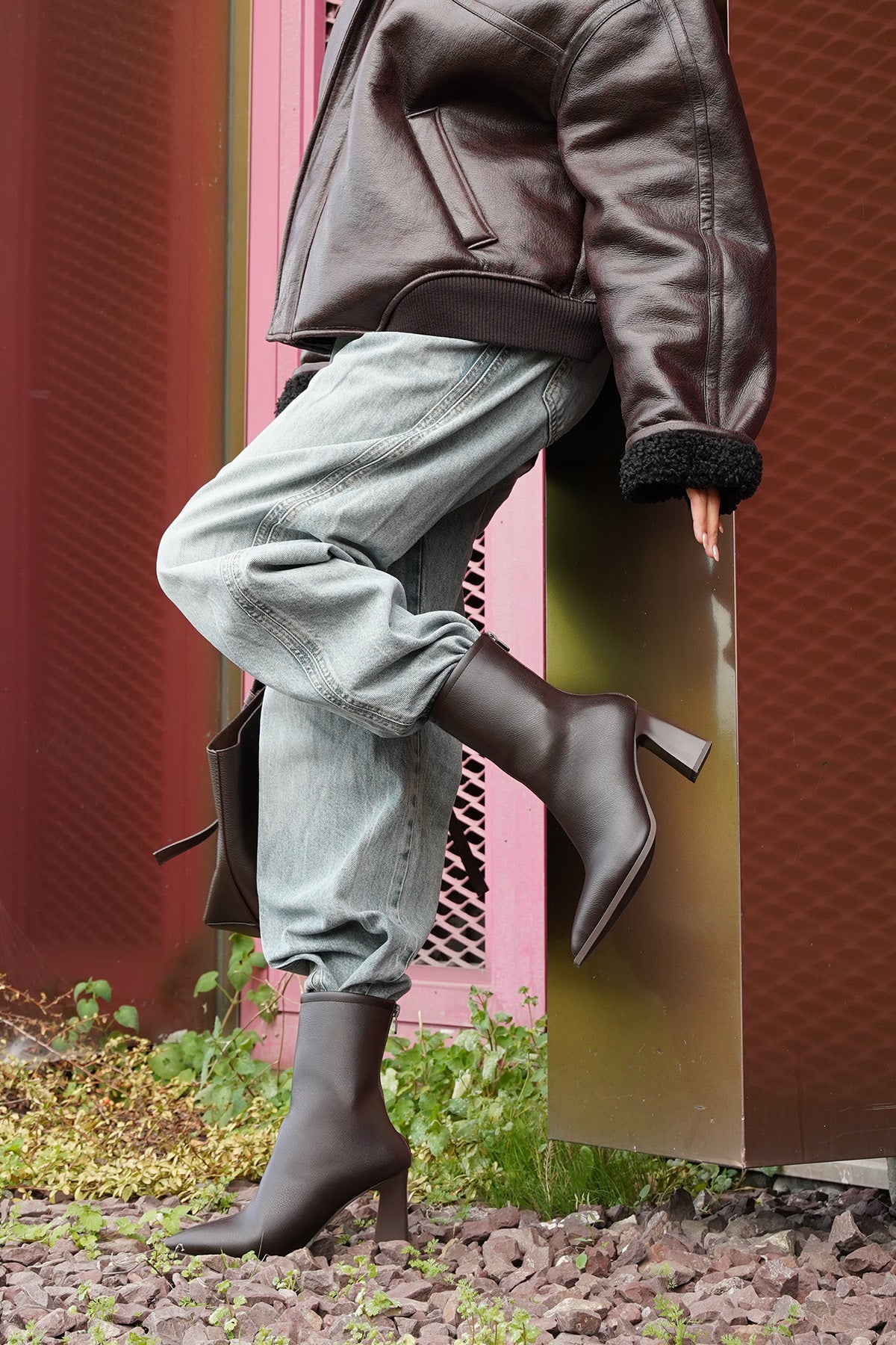 Kadın Sivri Burun Topuklu Çizme Lavisa - Kahve Süet
