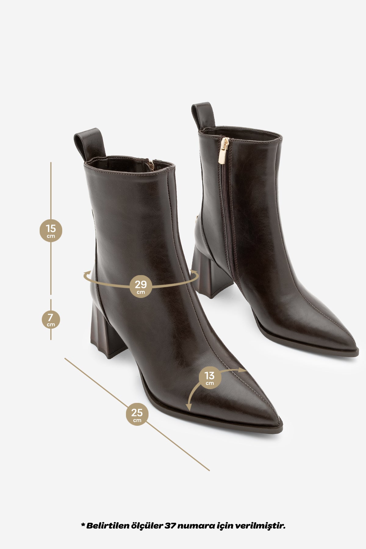 Kadın Sivri Burun Topuklu Bot Esvon - Kahve