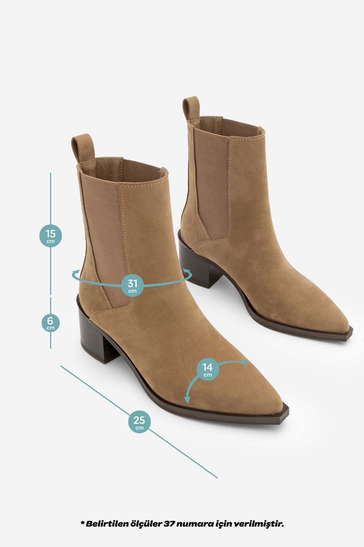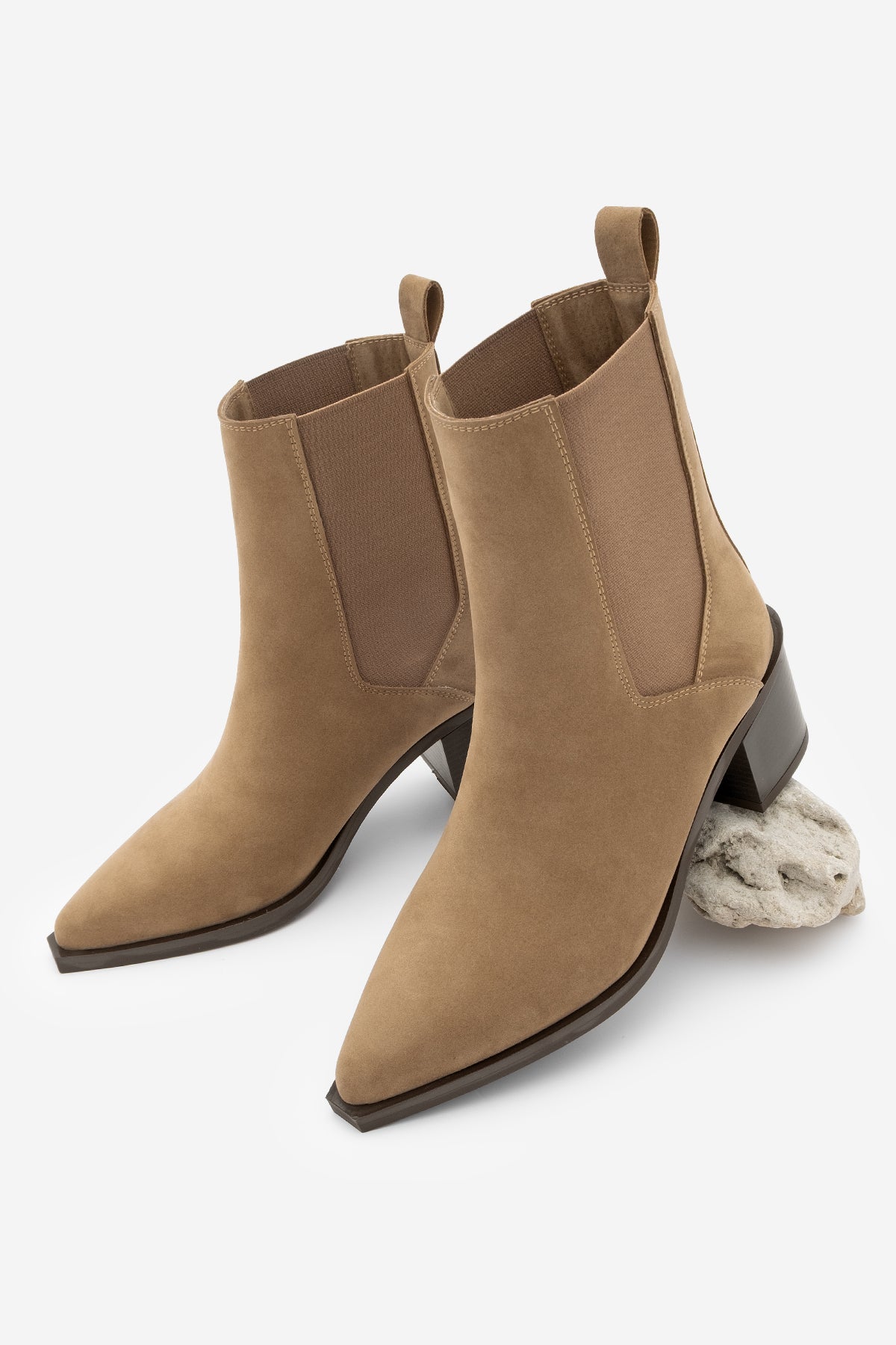 Kadın Sivri Burun Topuklu Bot Ropes - Taba Süet