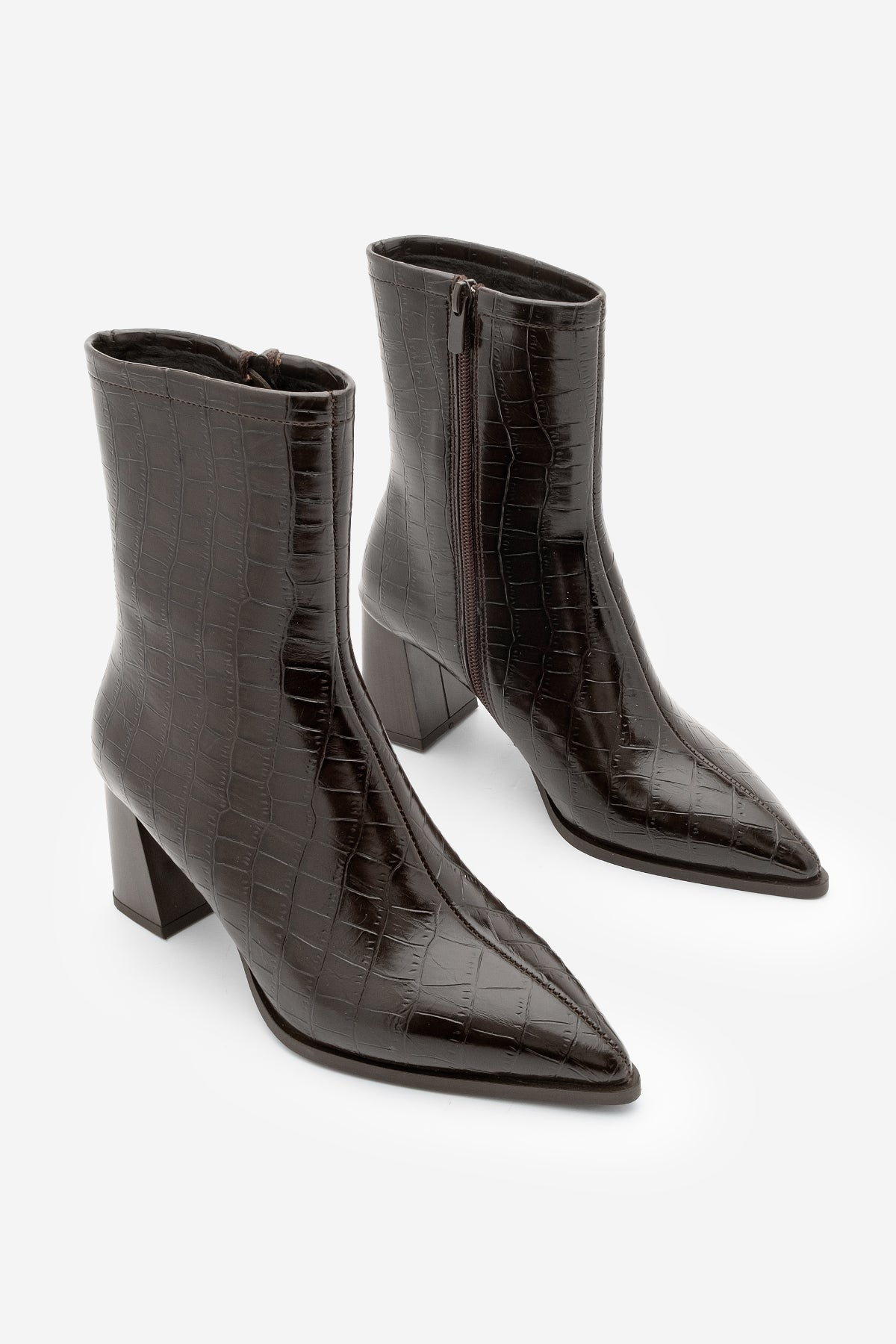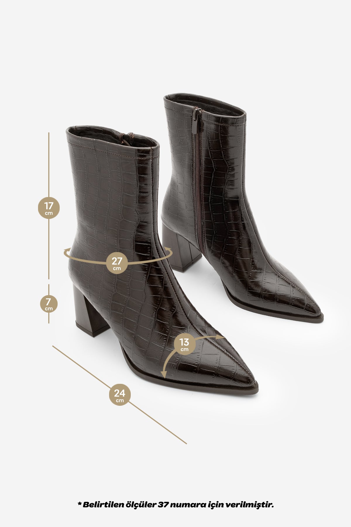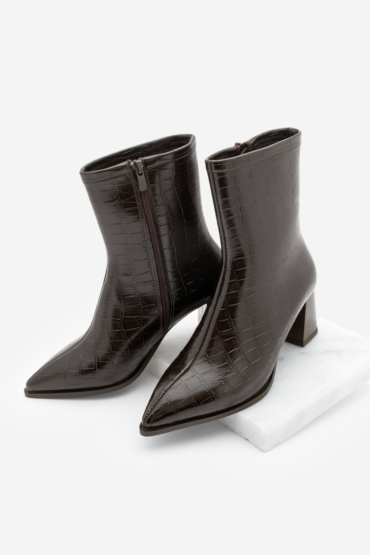 Kadın Kalın Topuklu Bot Mirasa - Siyah Croco