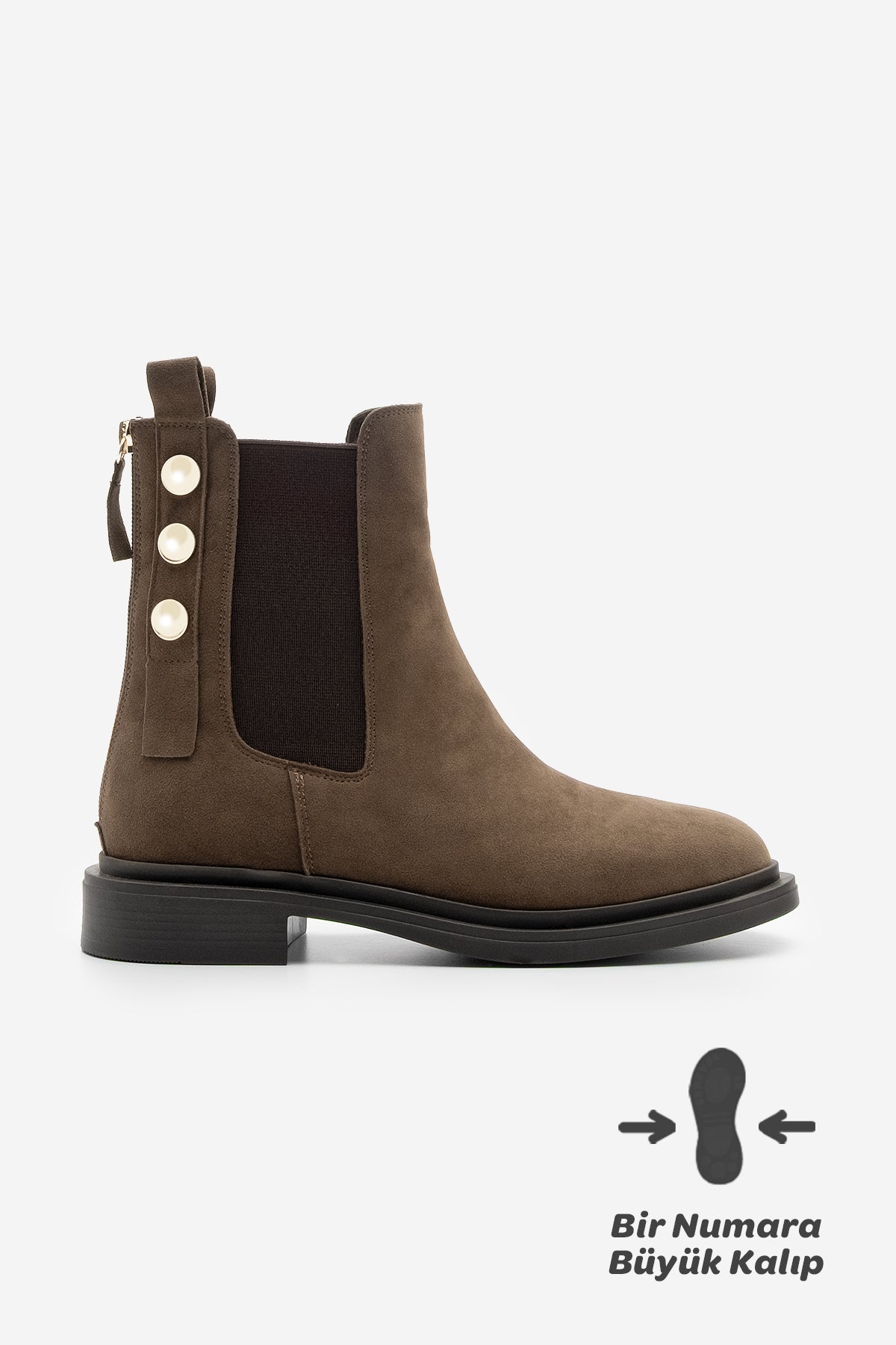 Kadın Lastikli Günlük Bot Pinge - Kahve Süet