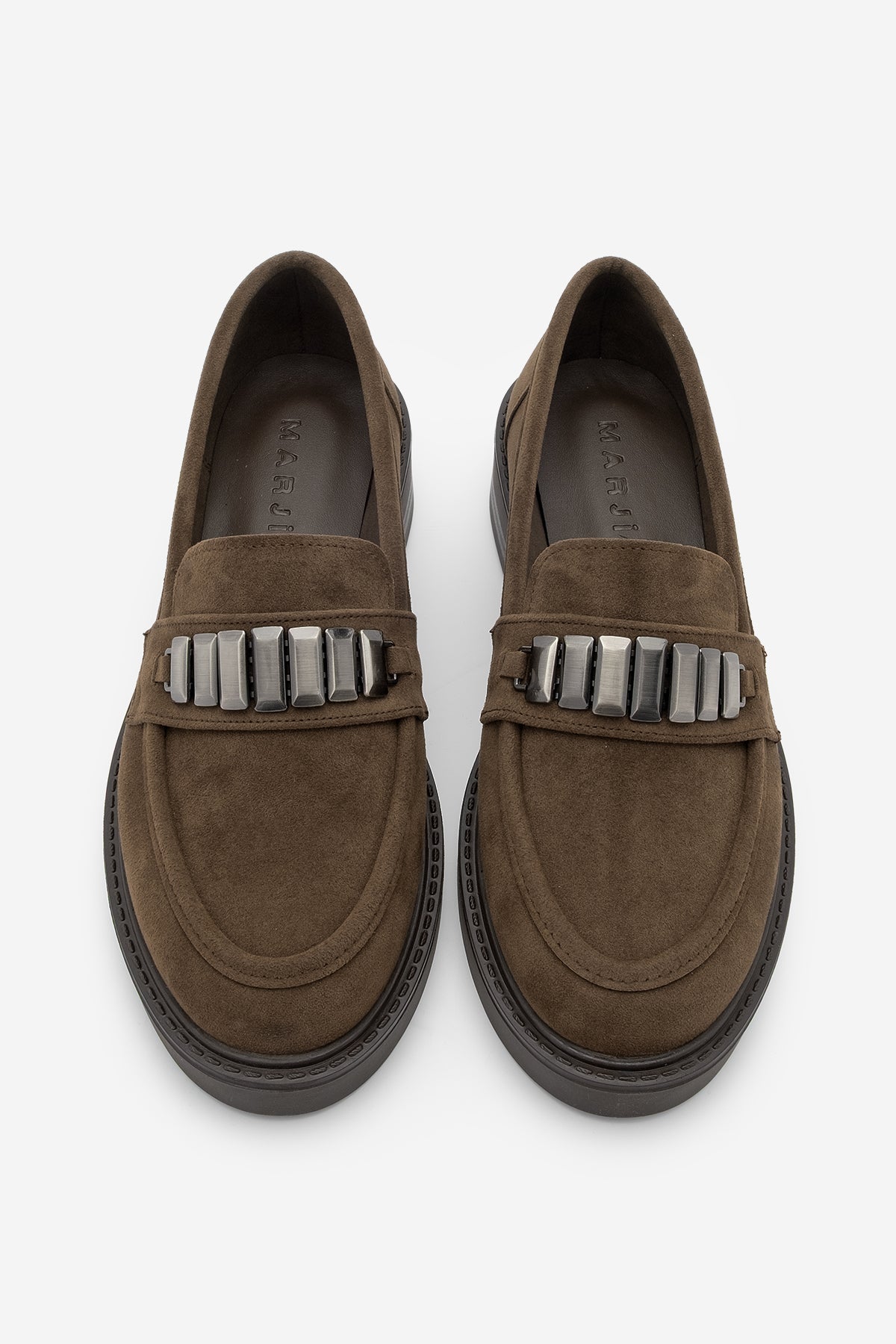 Kadın Loafer Tokalı Günlük Ayakkabı Vilyum - Kahve Süet
