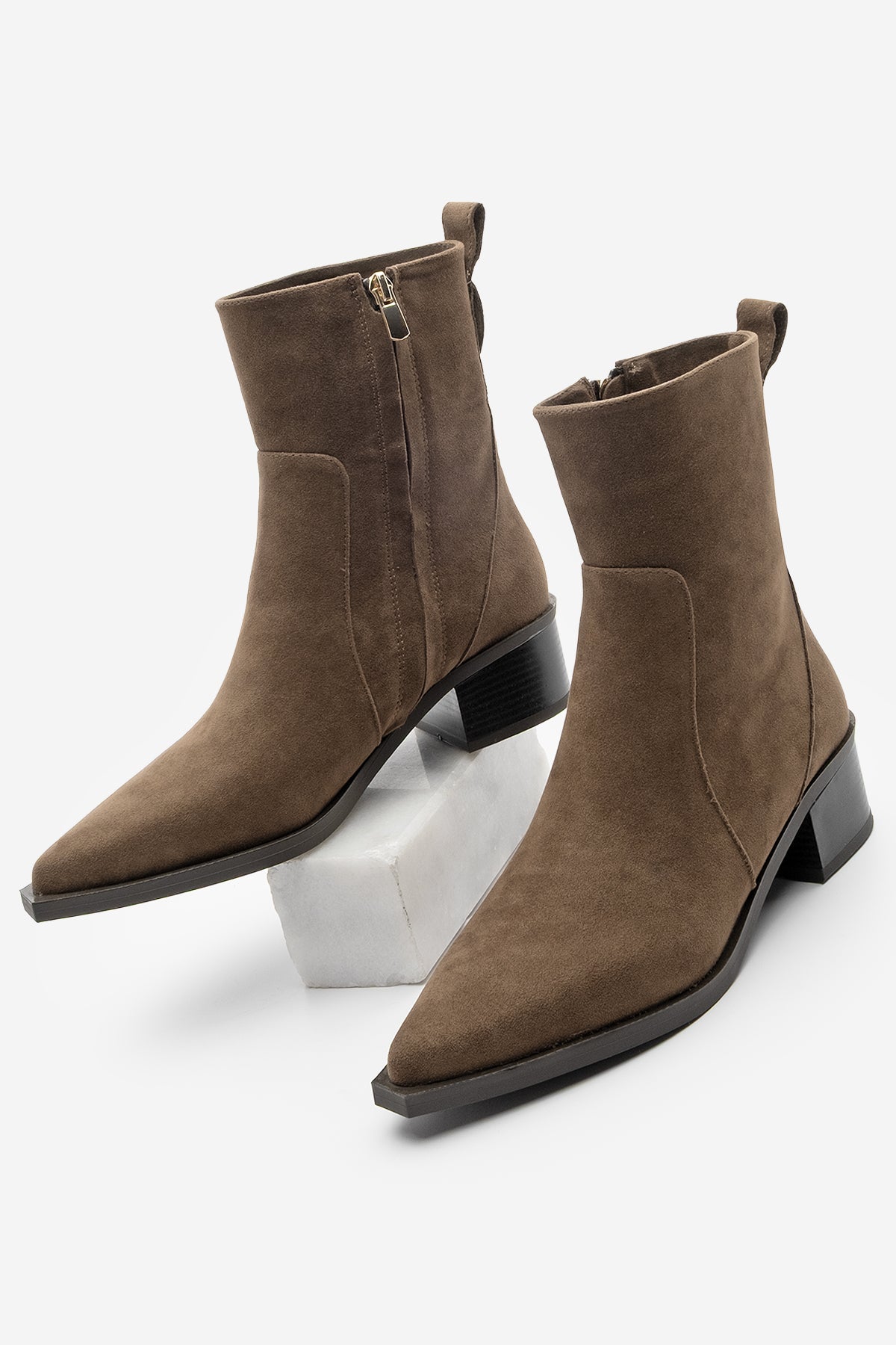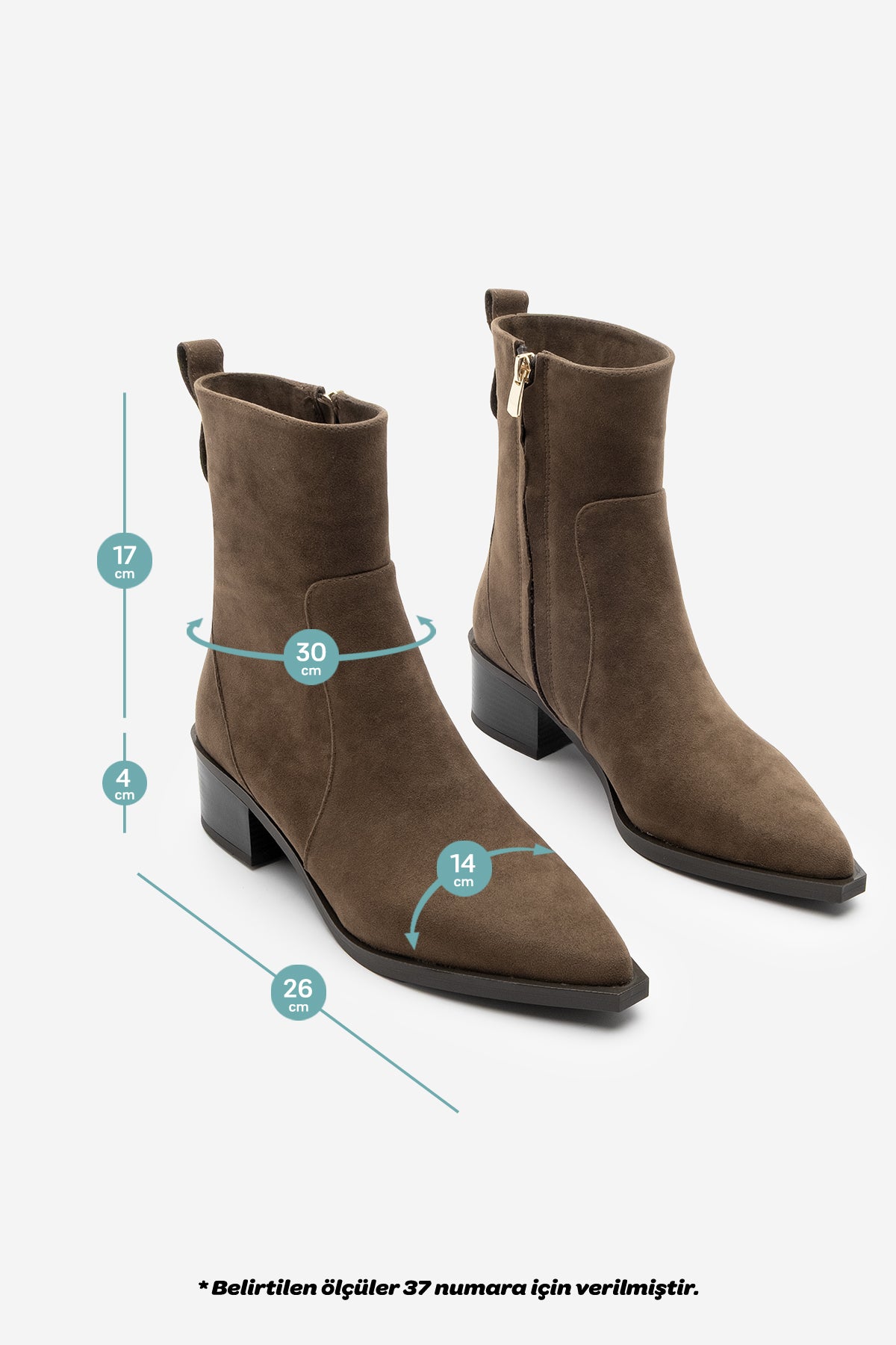Kadın Sivri Burun Topuklu Bot Kenor - Kahve Süet