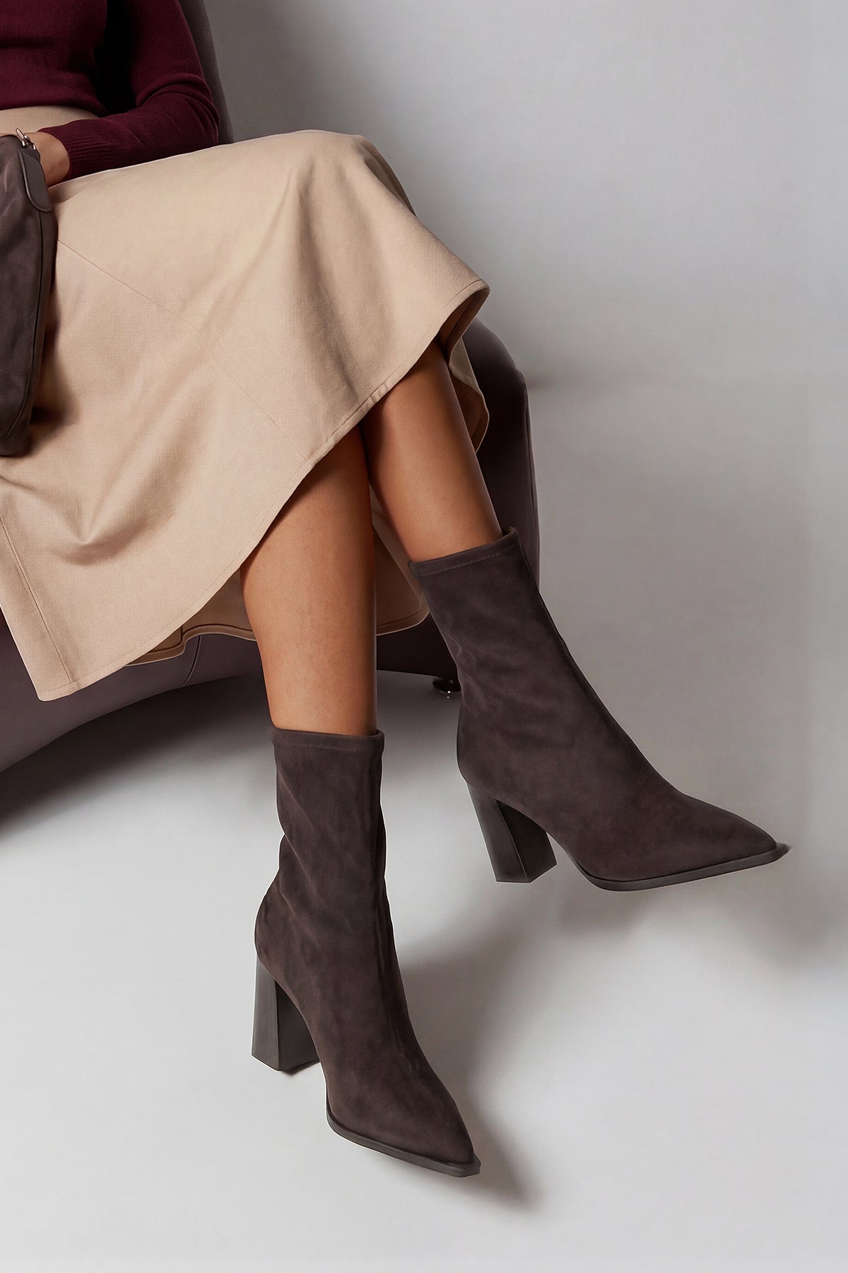 Kadın Topuklu Bot Holes - Kahve Süet