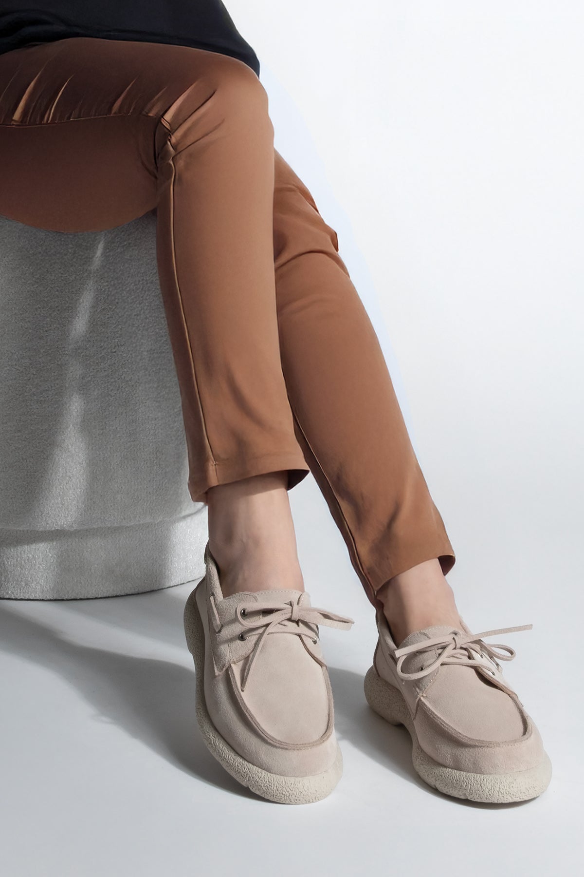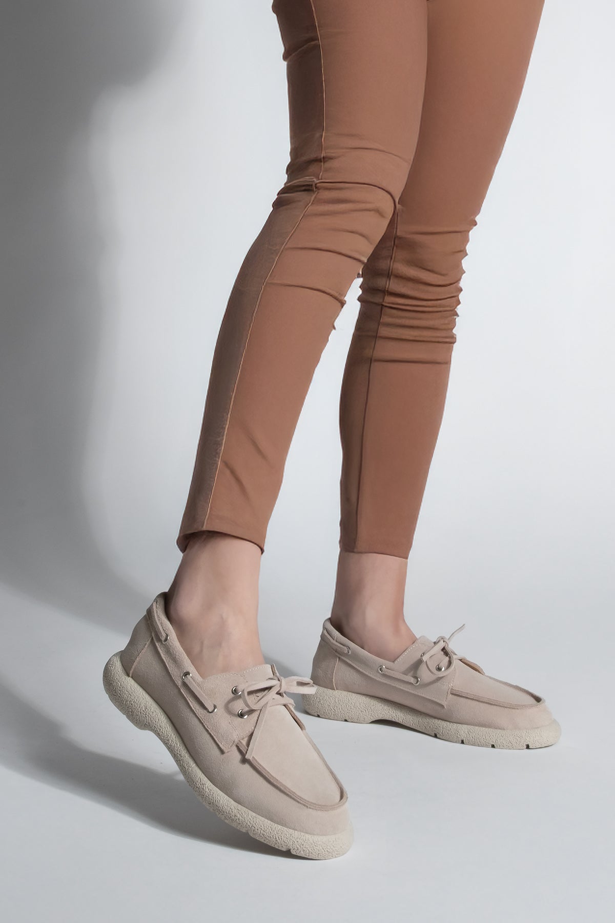 Kadın Hakiki Deri Loafer Günlük Ayakkabı Enita - Bej Süet